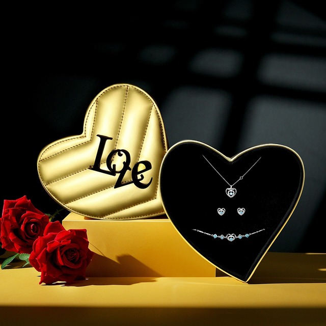 162.LOVEハート ジュエリーギフトボックス|カップルアクセサリーセット対応|特別な日のための高級プレゼントケース