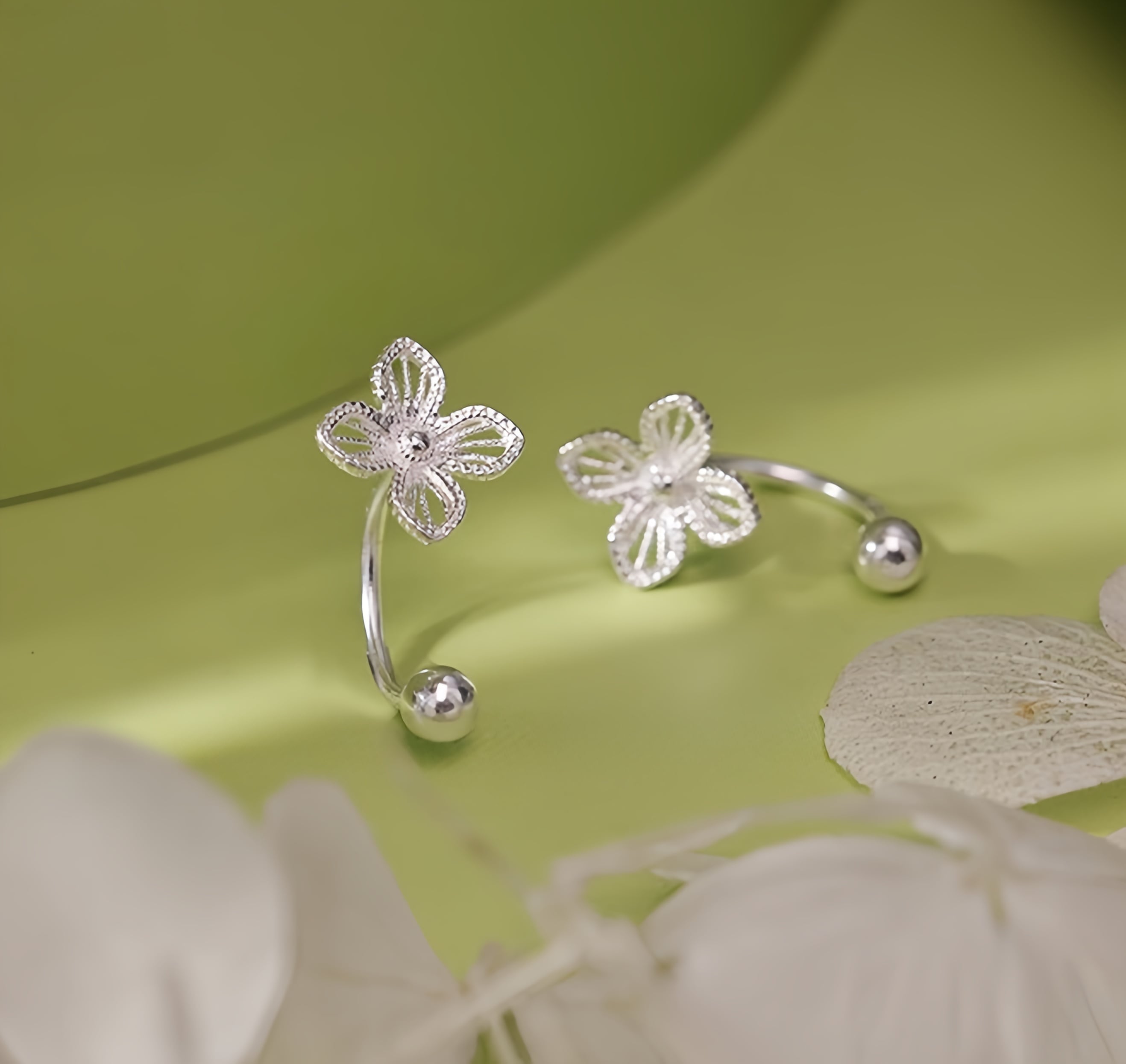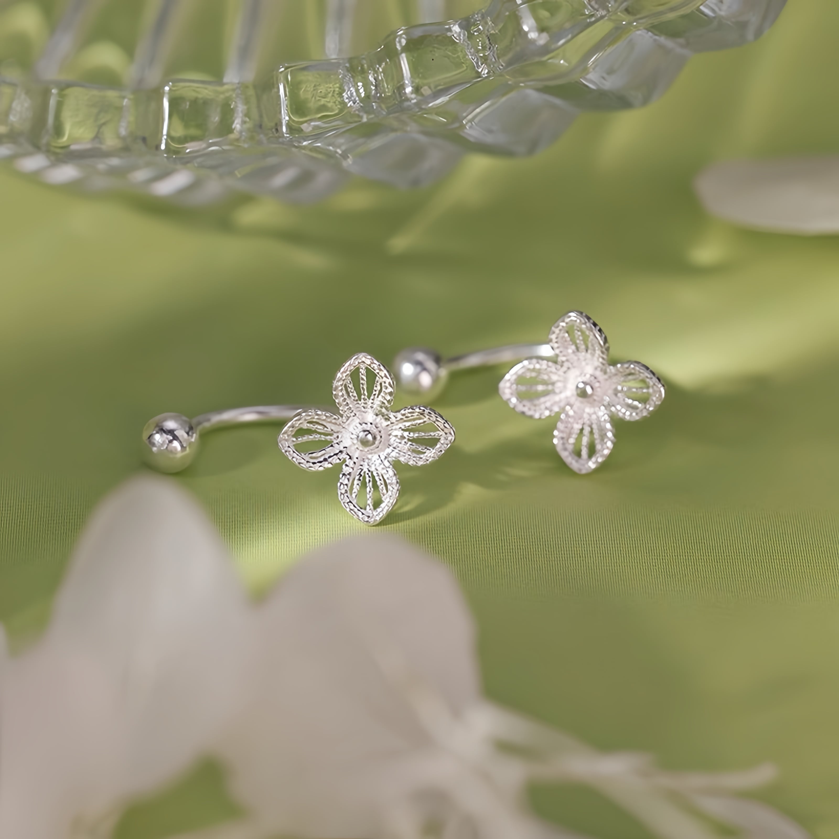 92.【EMBERGLOW専用925シルバーポスト】四つ葉のクローバーピアス|耳元にそっと華やぎを添える、繊細で大人可愛いシンプルジュエリー。普段使いやデートにもぴったりで、どんなコーデにも合わせやすい上品アクセサリー。