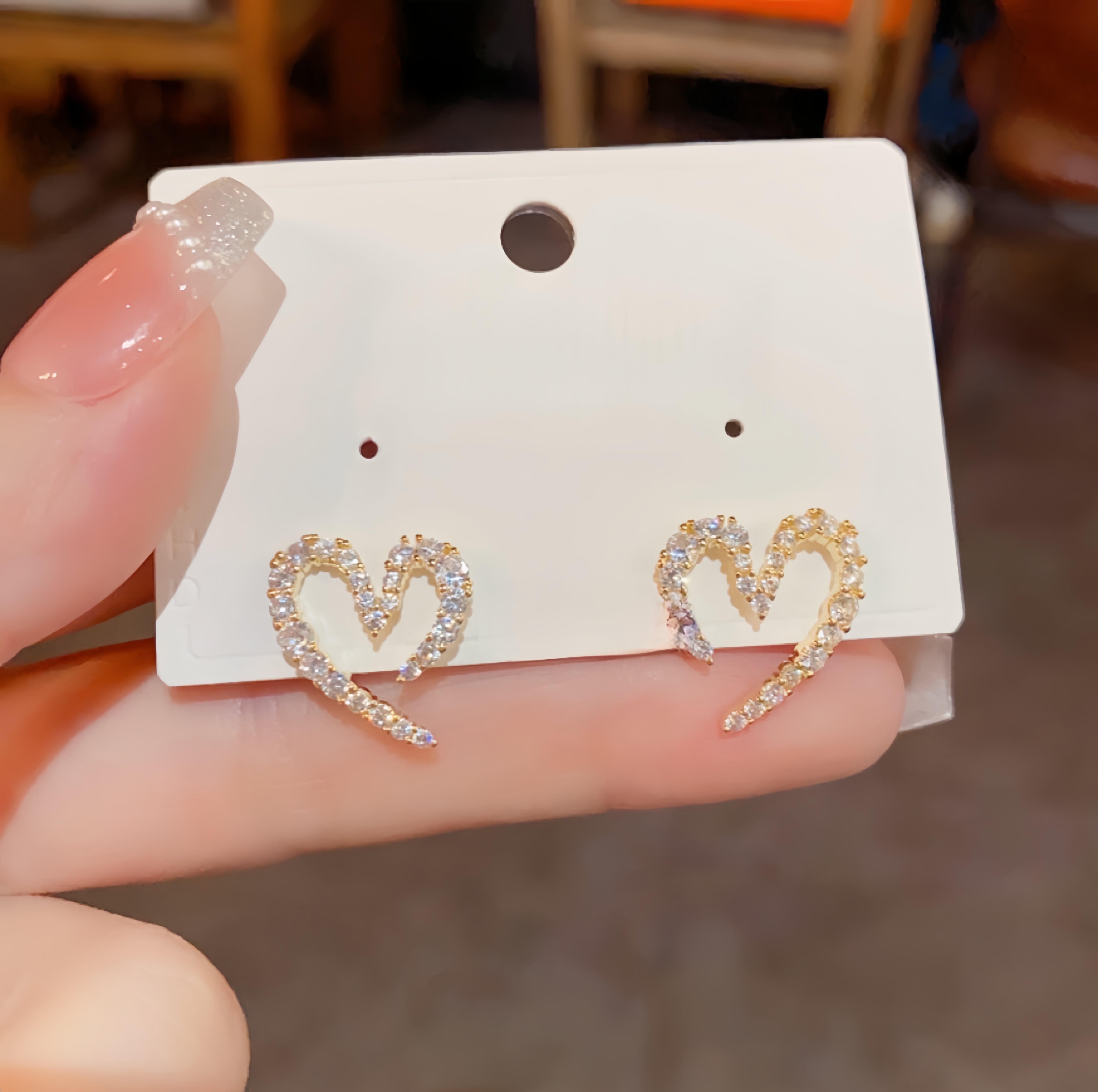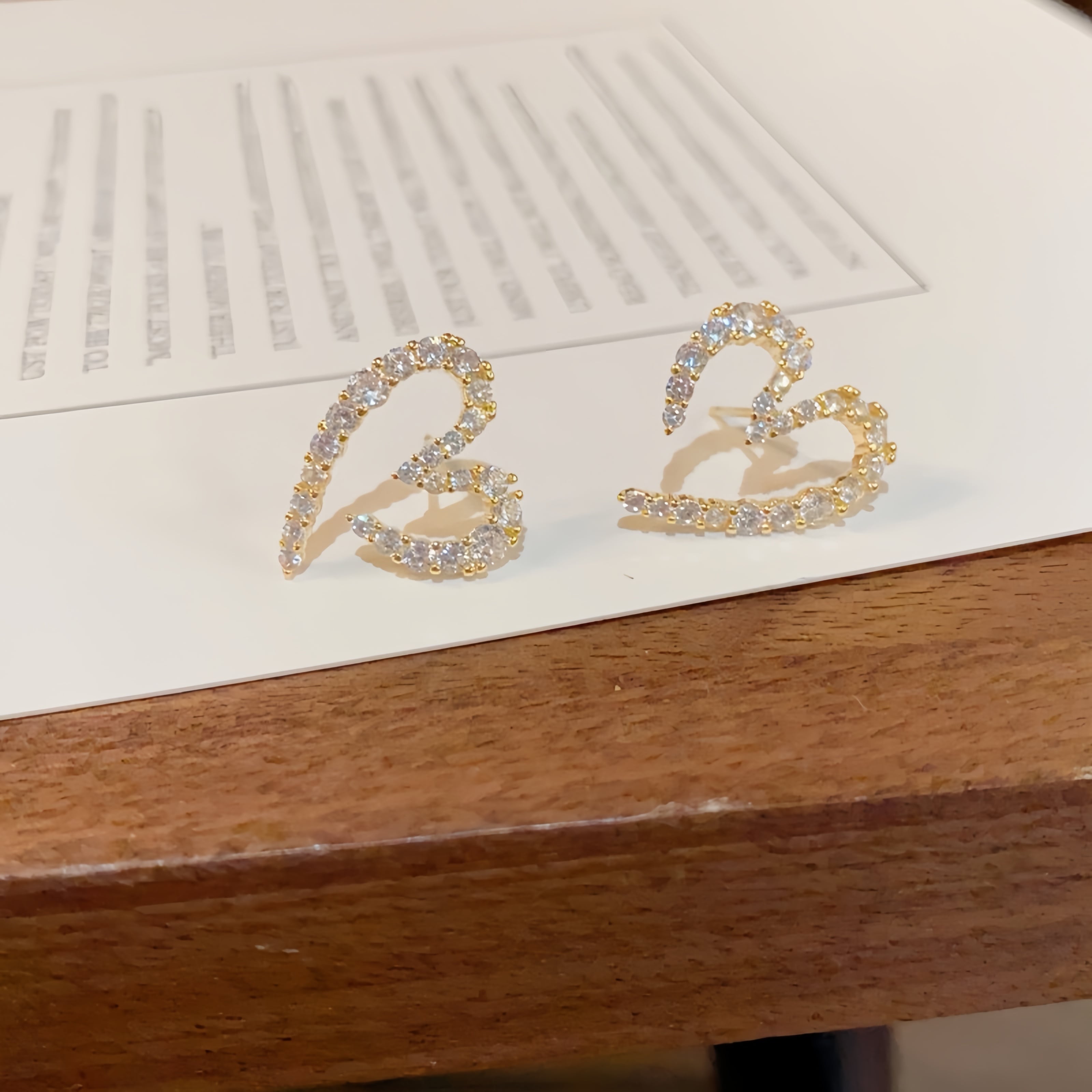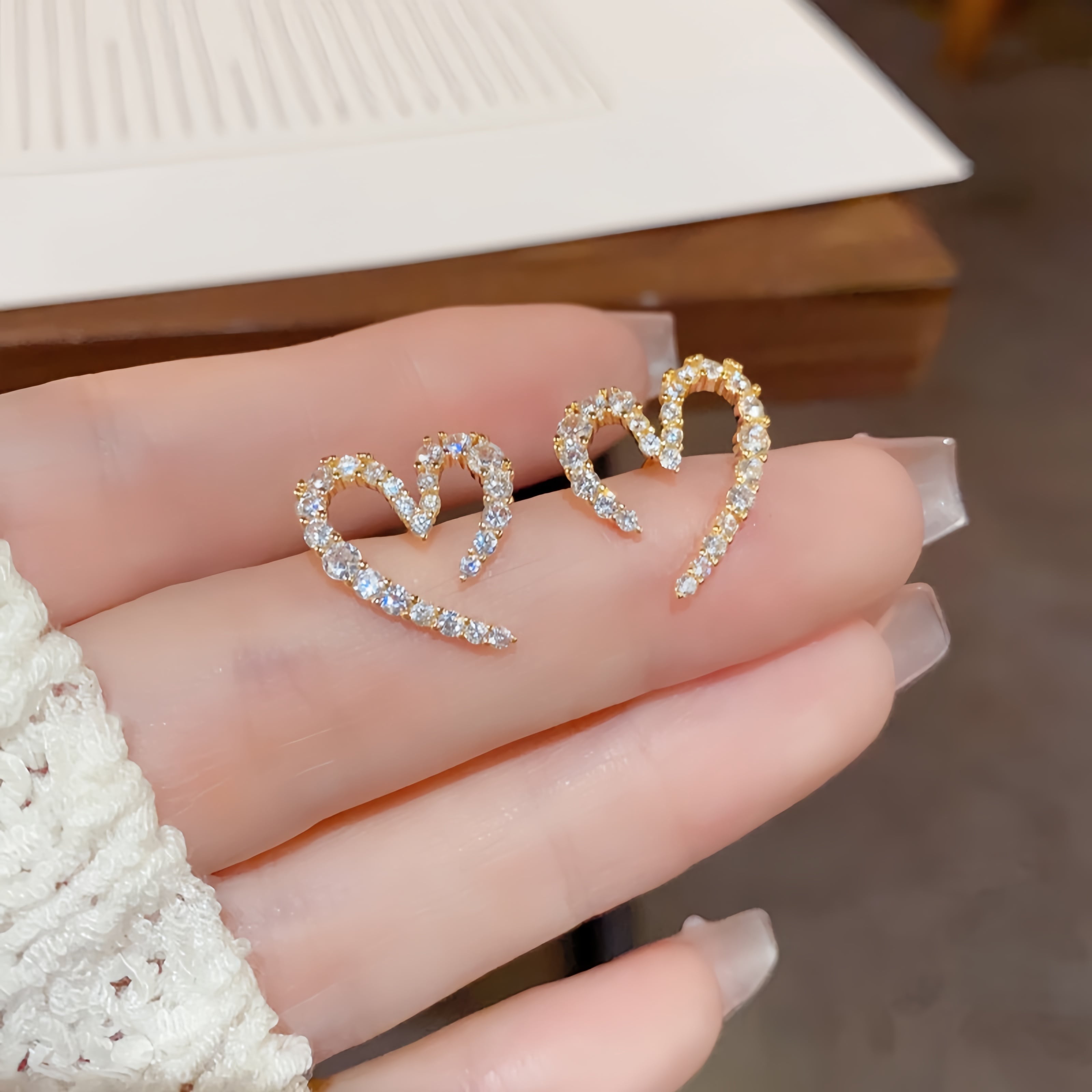 93.【EMBERGLOW専用925シルバーポスト】ハートスパークルピアス|上品な輝きで耳元を華やかに小ぶりで可愛らしいデザイン、大人の可愛さを演出。デイリーからデートまで、毎日つけたくなる耳元アクセサリー