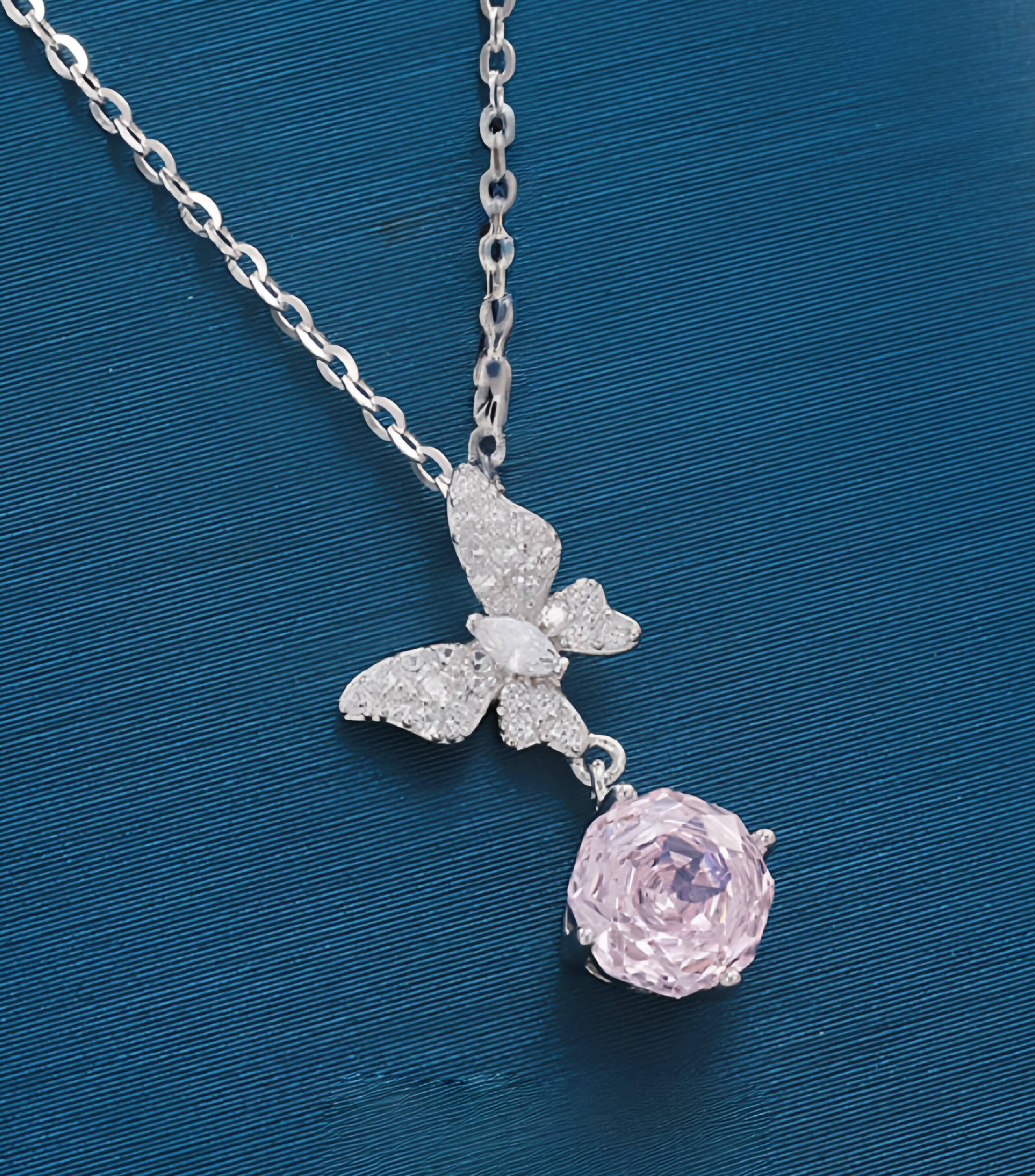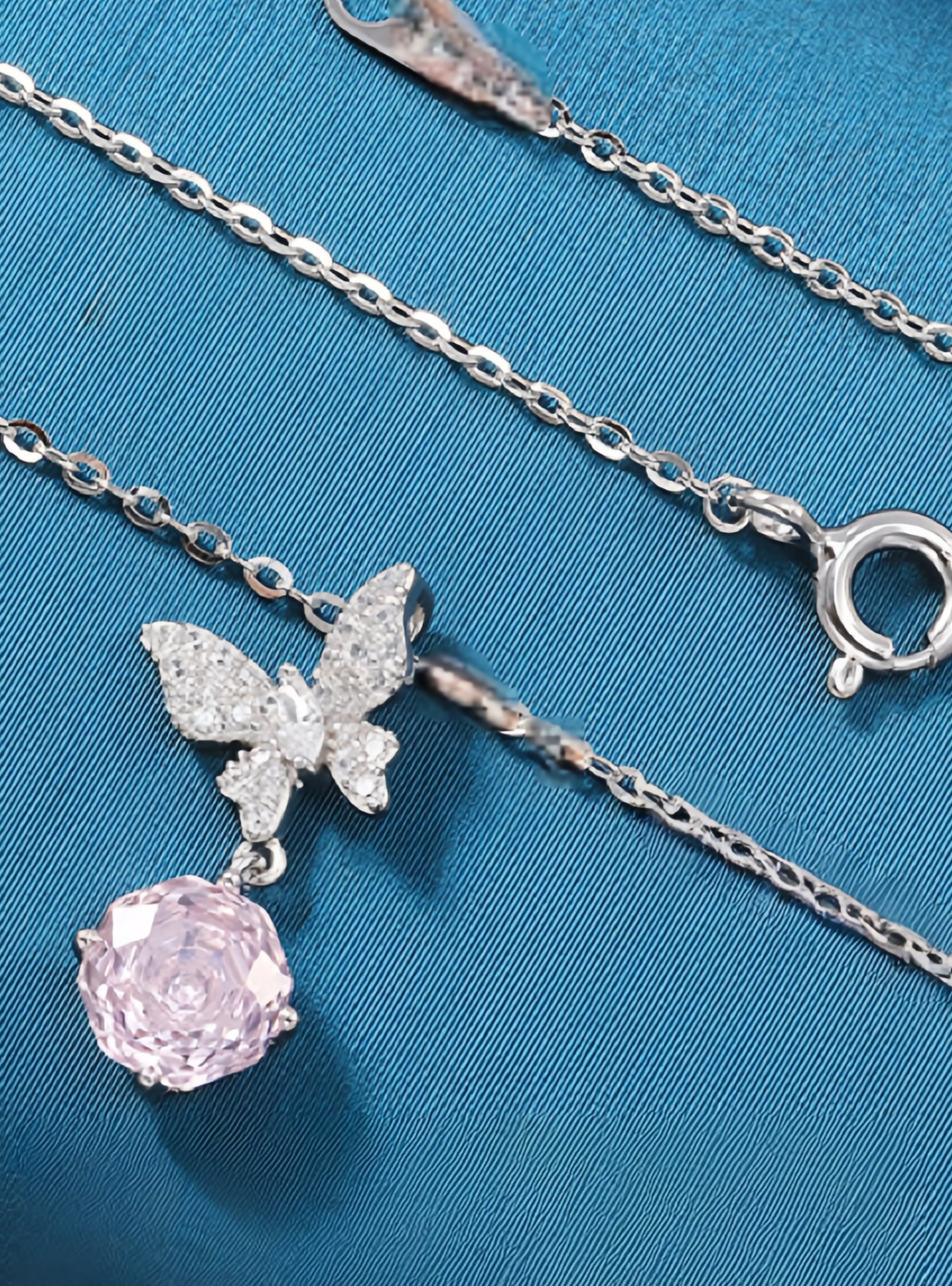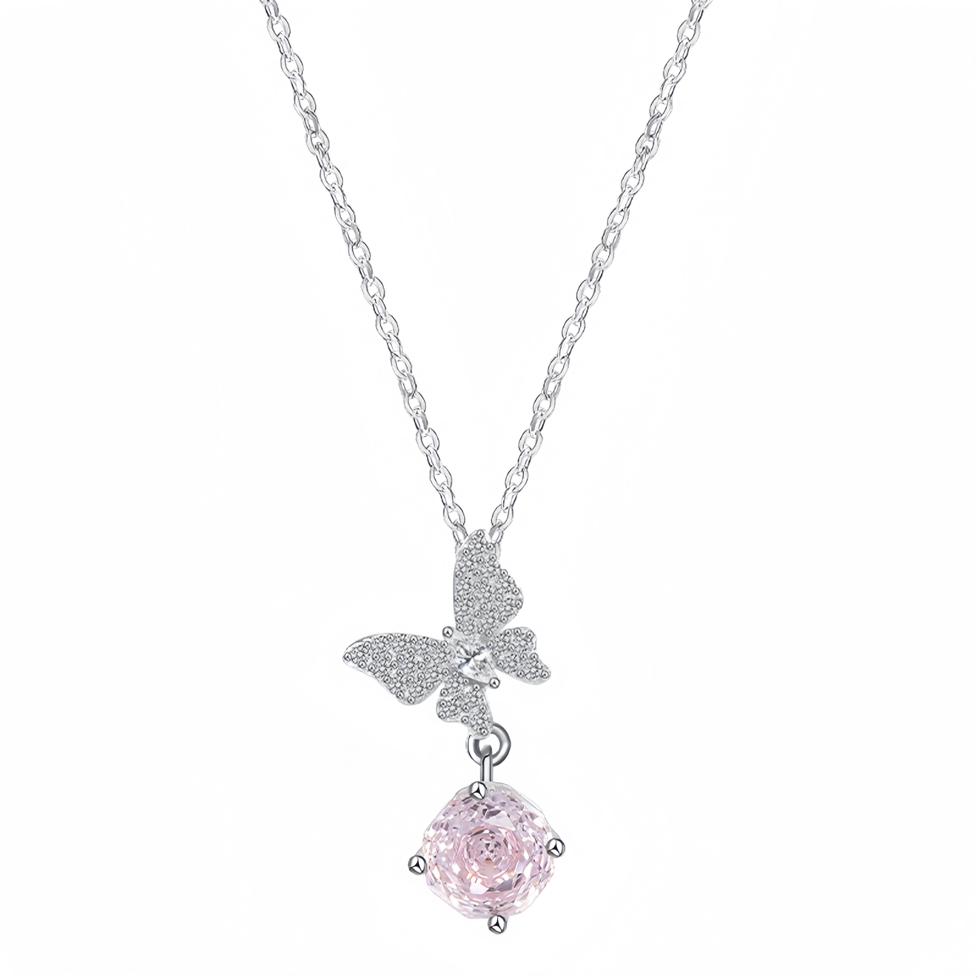 100.【S925銀】華奢なバタフライネックレス ピンクジルコニアが可愛く輝き、大人の可愛さをさりげなく演出。普段使いにもぴったりで、自分用にもギフト用にもおすすめのアクセサリーです。