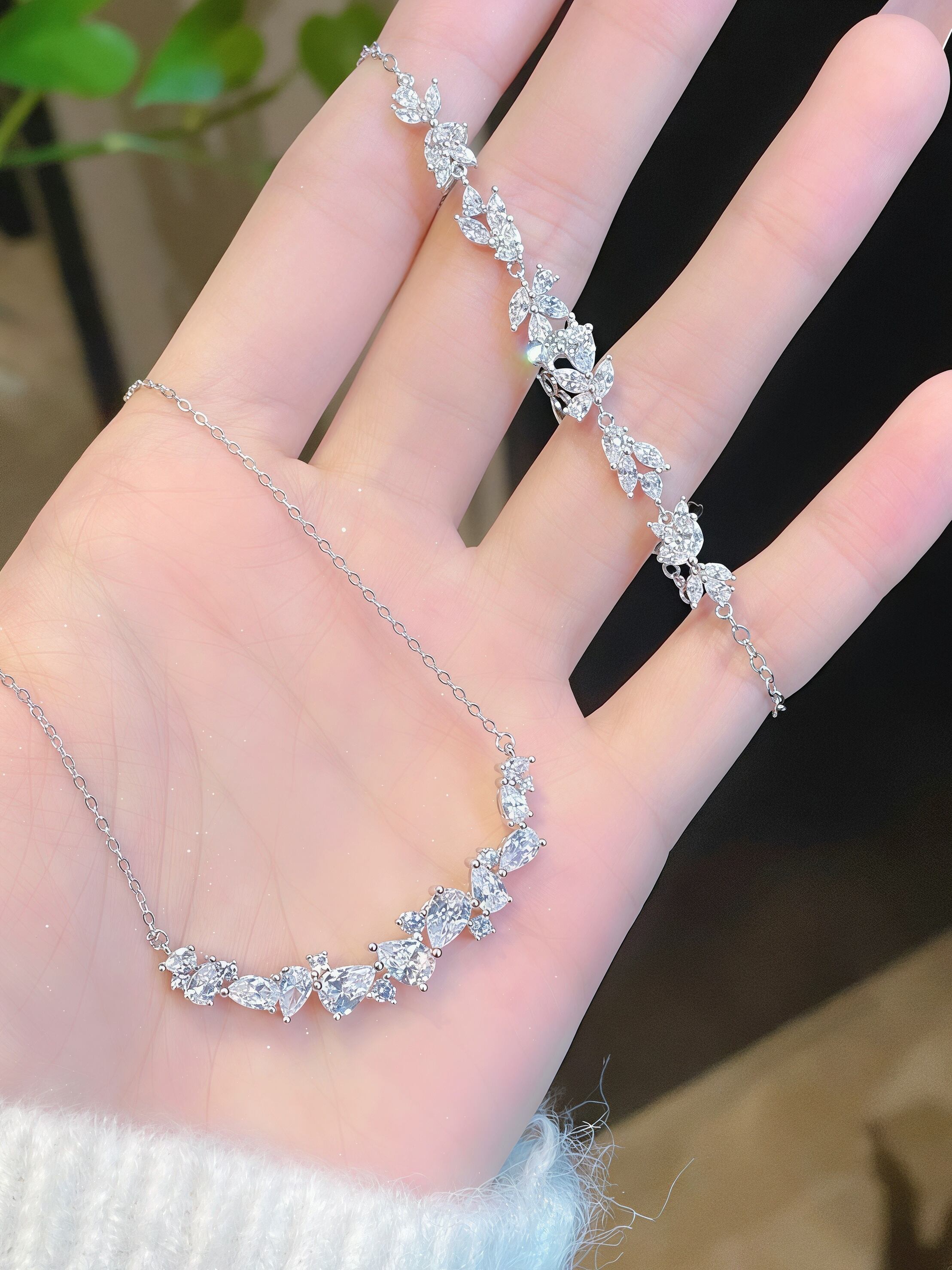 セットアイテム:ネックレスとブレスレットが揃ったセットで、日常使いはもちろん、特別なシーンにもぴったり。