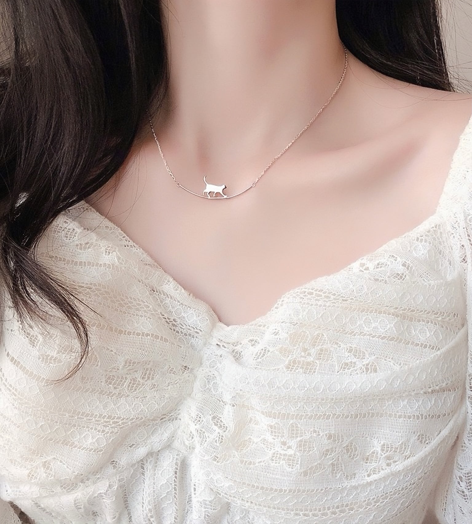 シンプル&個性的なデザイン猫モチーフとアーチラインが首元を華やかに演出。どんなスタイルにも馴染み、さりげなく個性をプラスします。