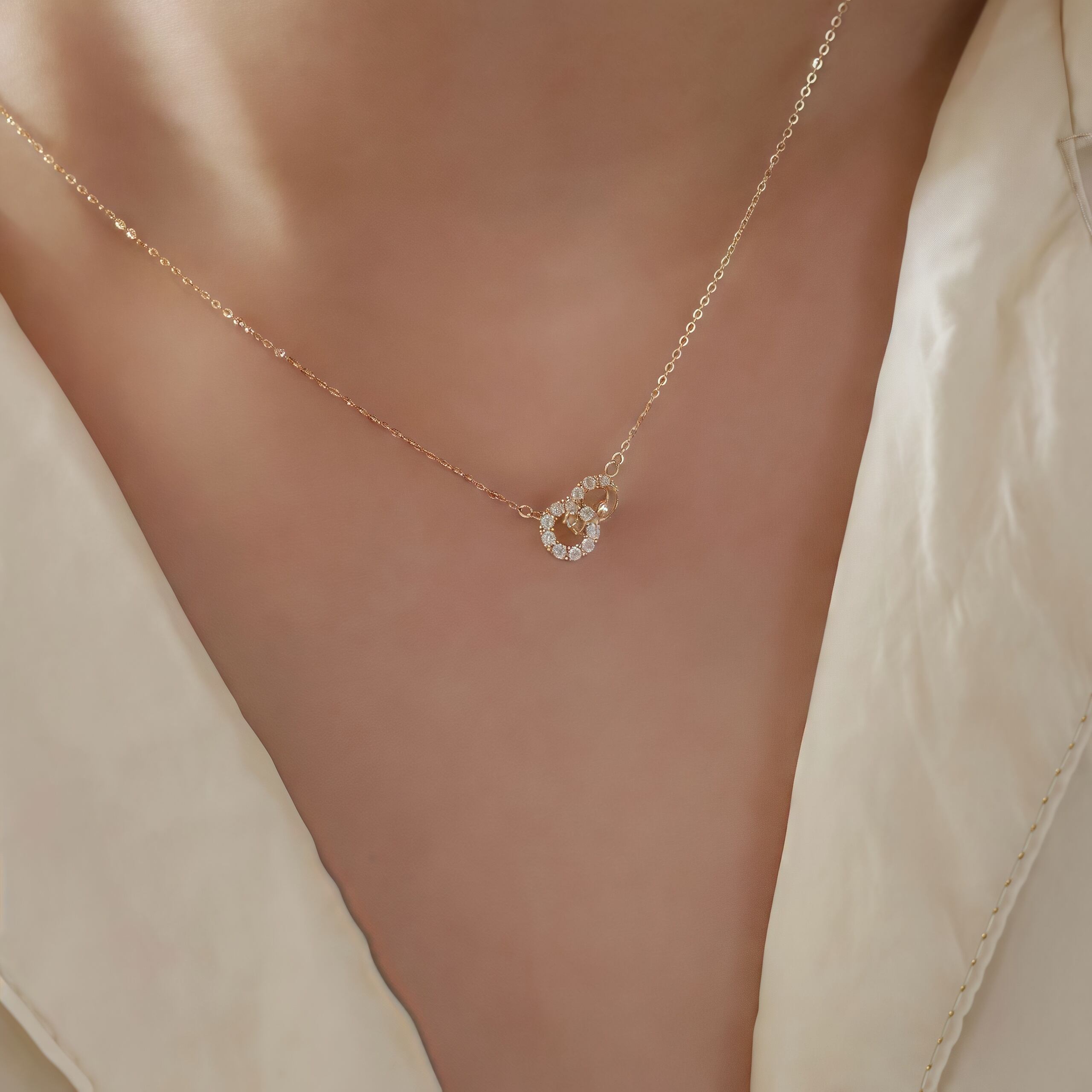 111.絆を結ぶサークルネックレス|重なり合うリングが永遠の愛と繋がりを象徴。大切な人への贈り物にもぴったりな上品ジュエリー。