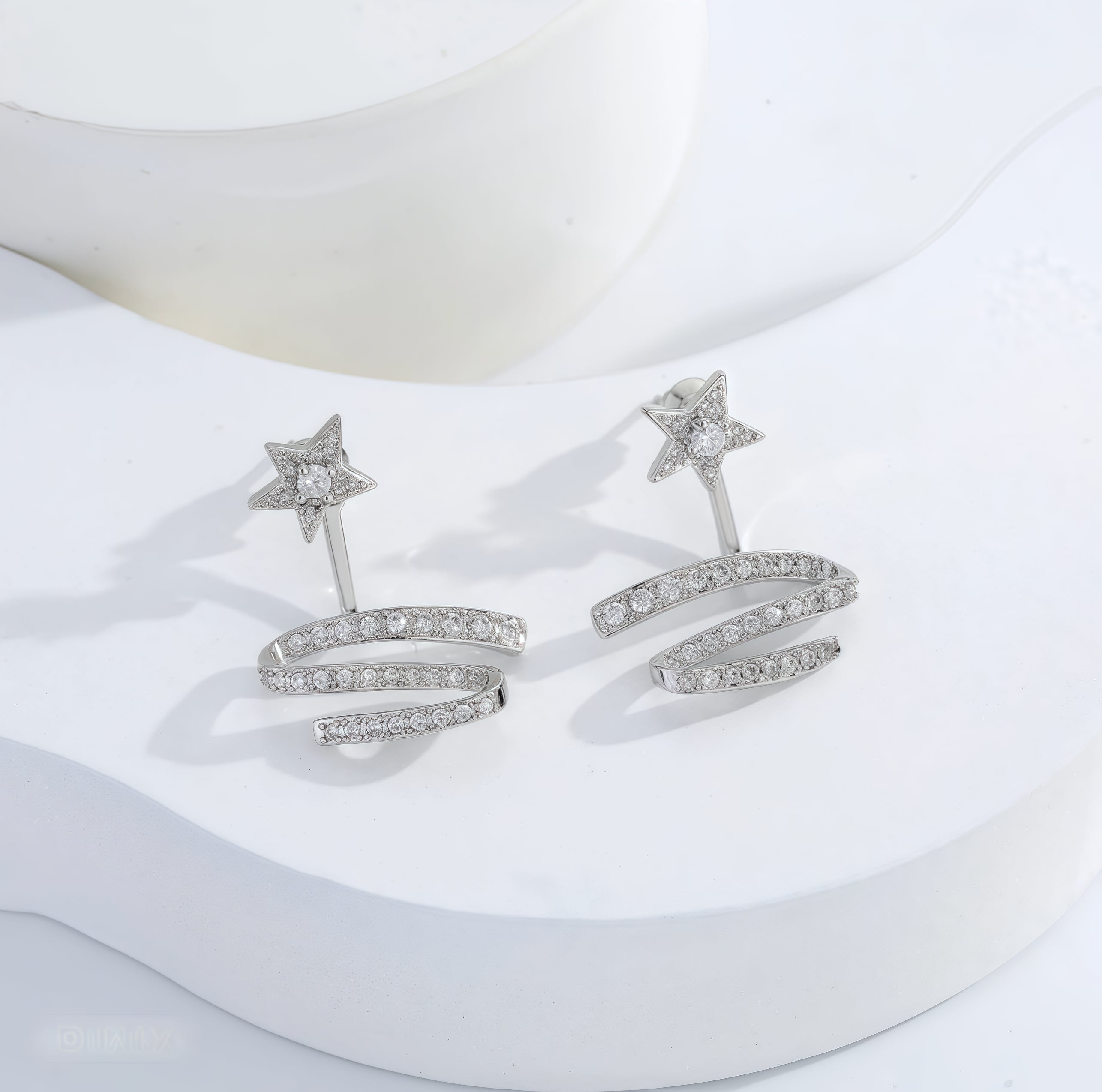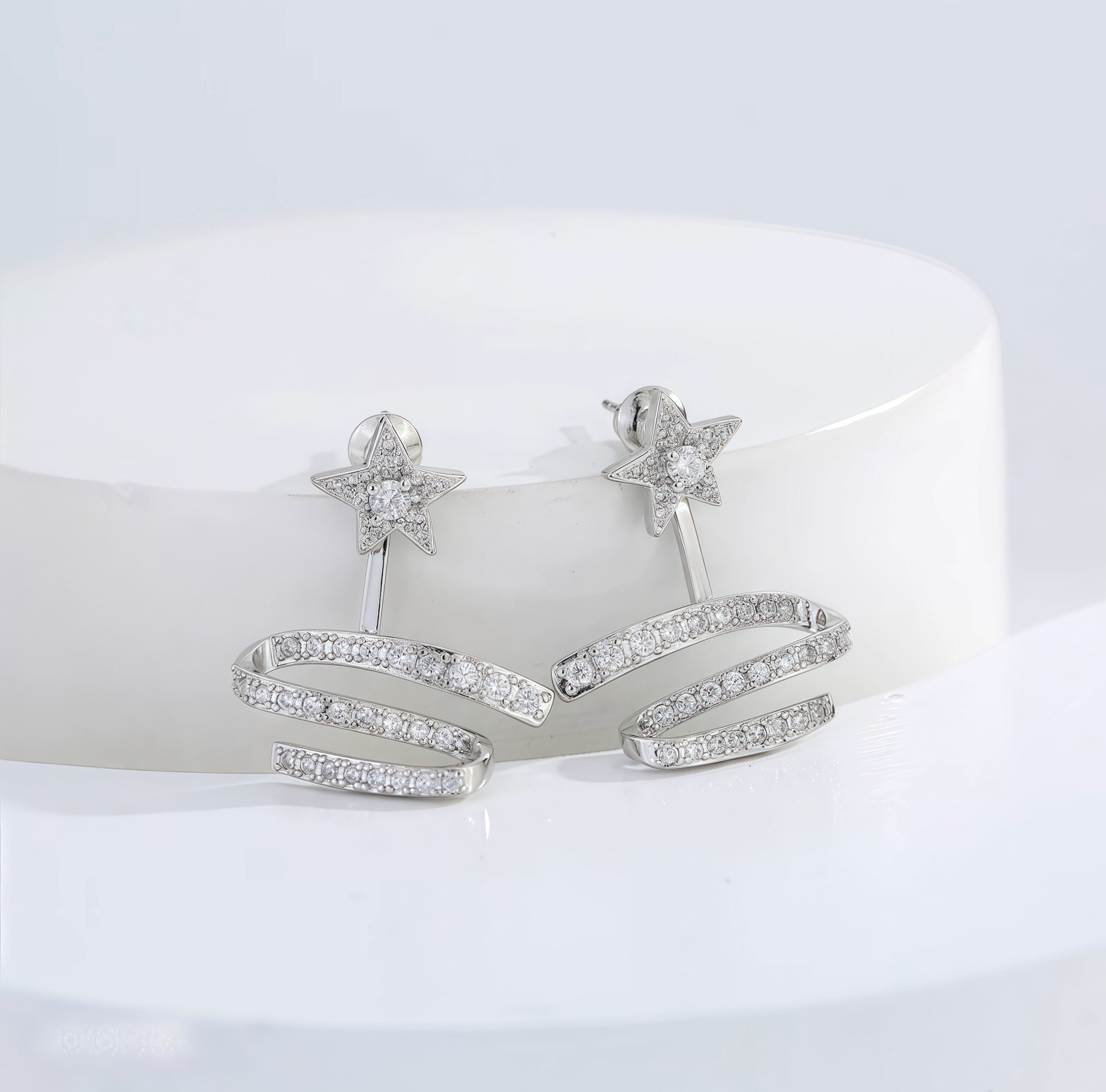 114.925 シルバーポスト星の光リボンイヤリング|キラキラジルコニアで星の輝きを胸元に|スパイラルリボンデザインが柔らかな大人可愛い雰囲気|デイリー・パーティー両用のシルバーピアス