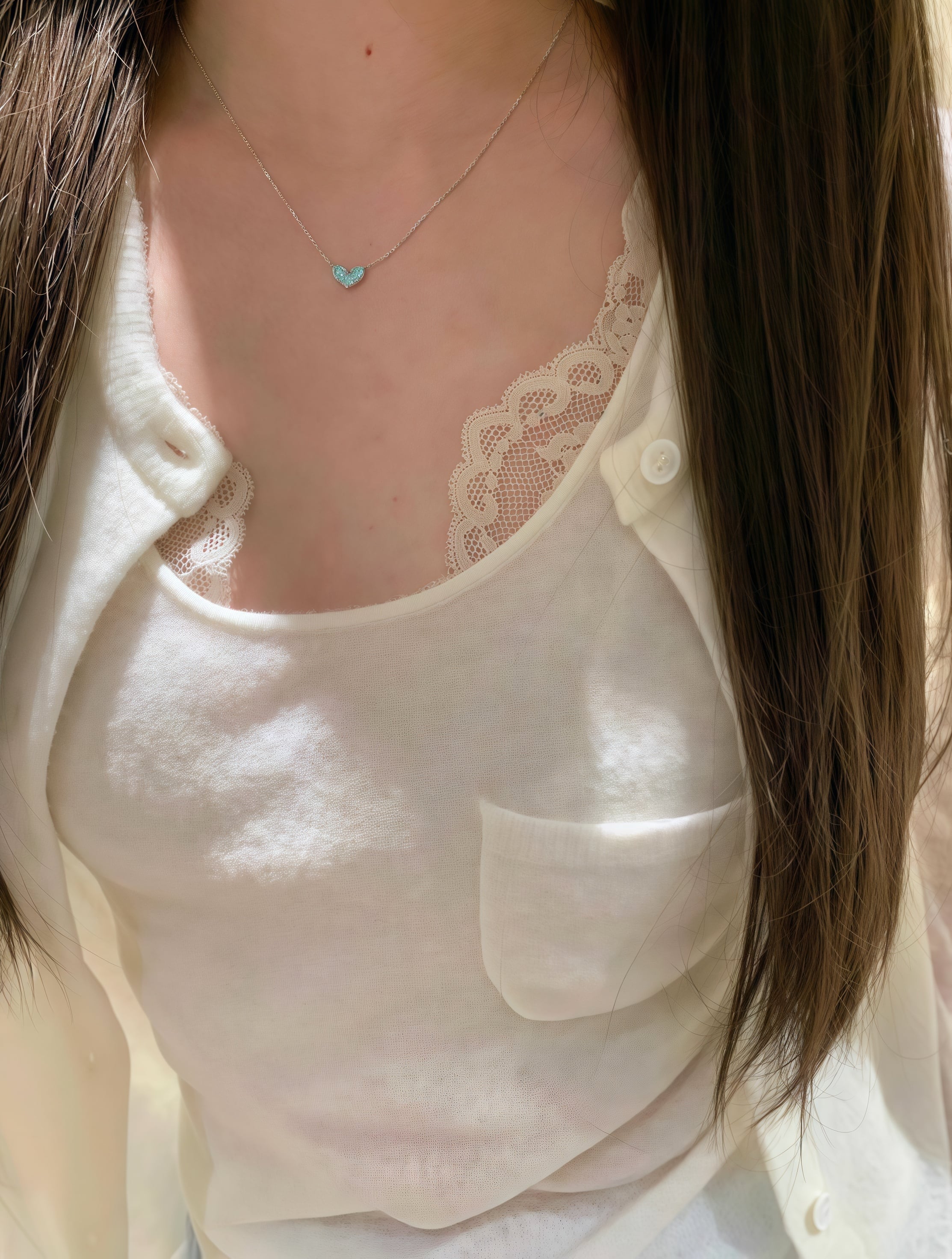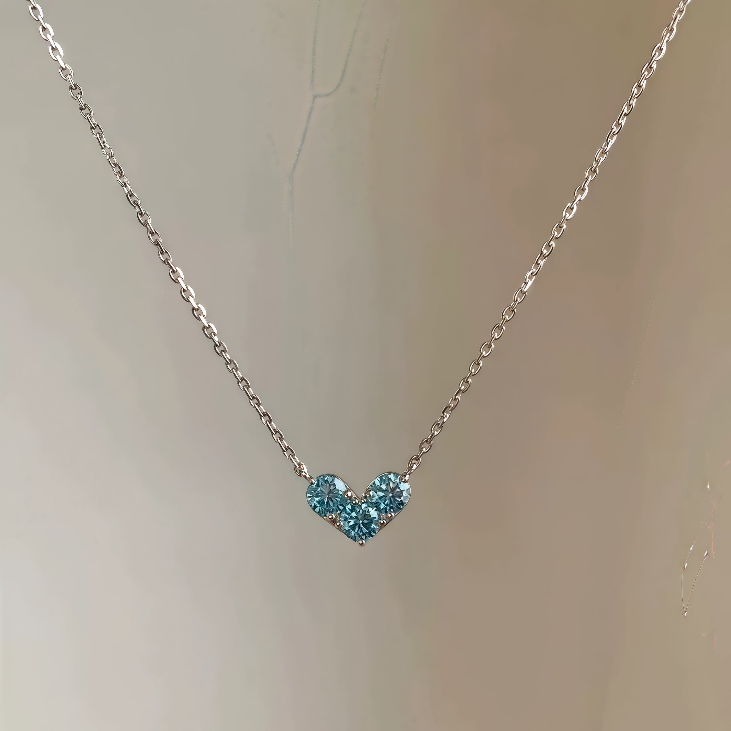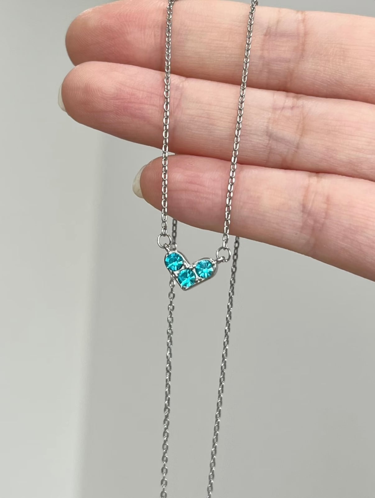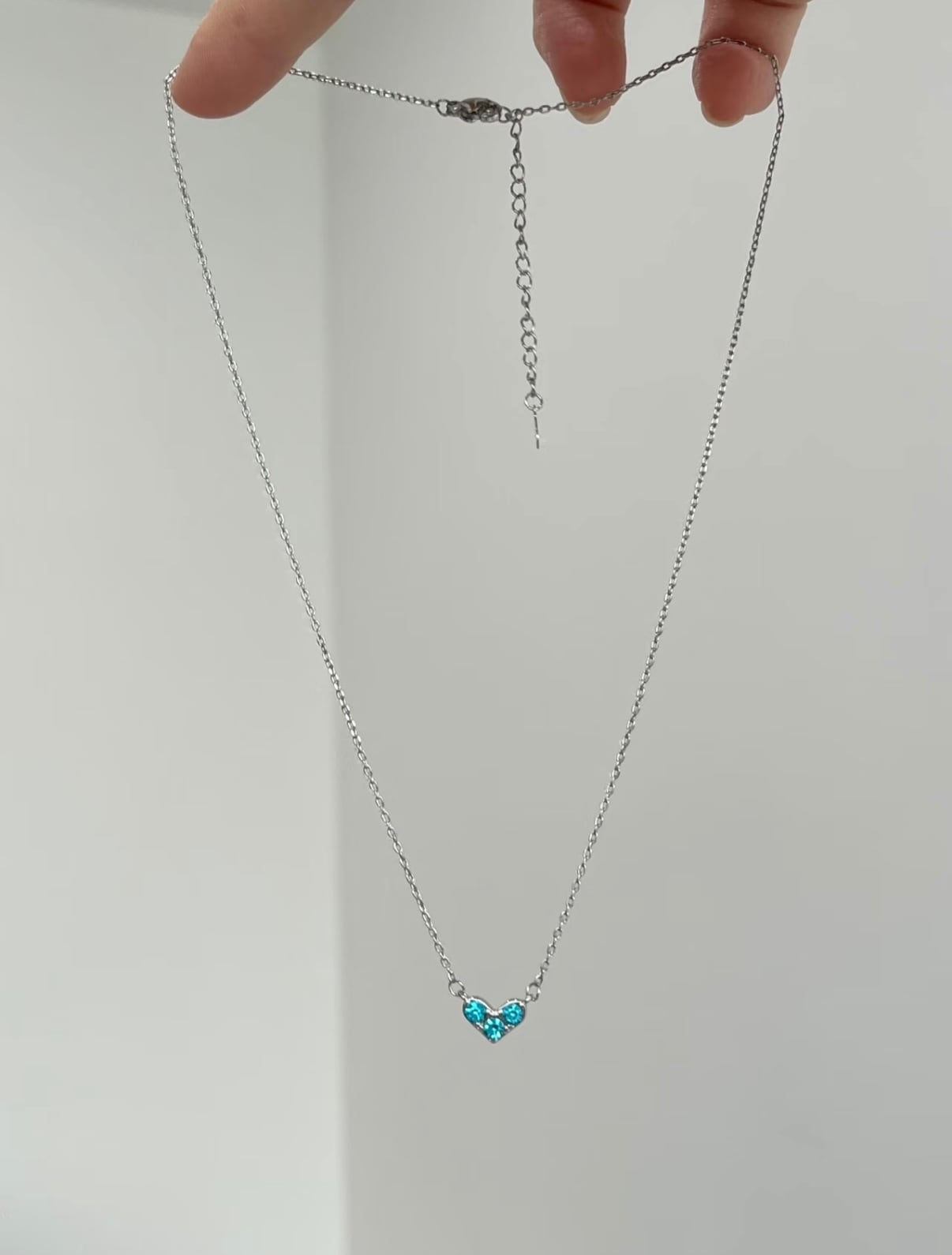 115.キラキラ青いハートネックレス オーシャンハート|小物でコーデを彩る可愛いネックレス|シルバーチェーンで大人可愛い