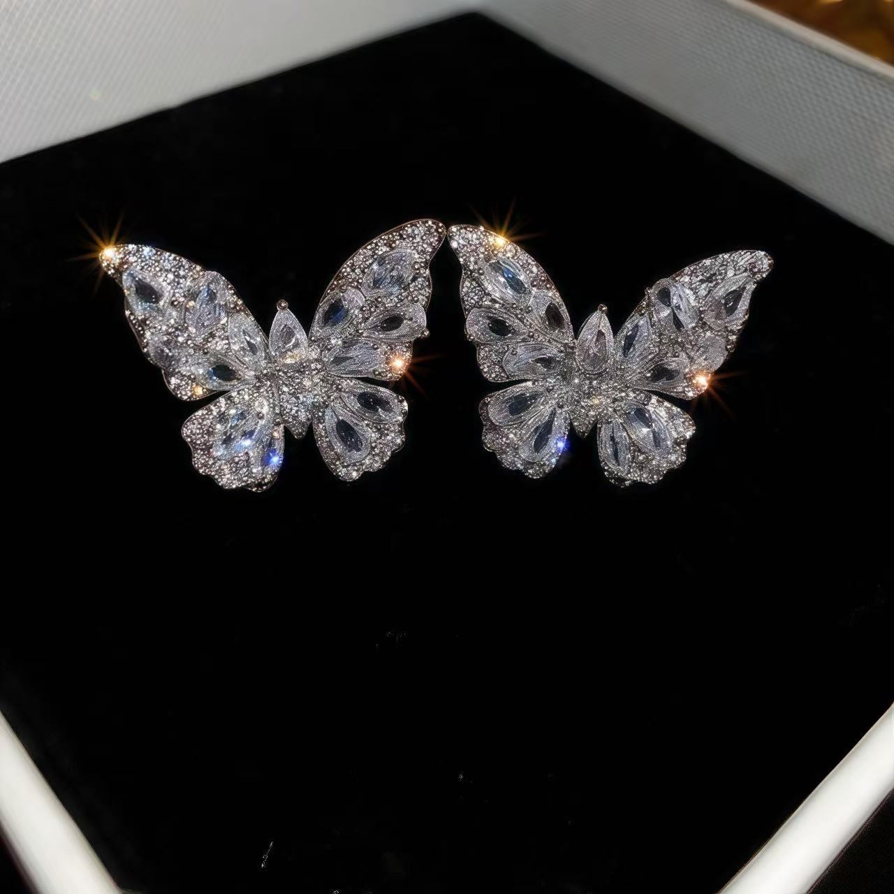 116.蝶デザインジルコニアイヤリングペア|1 セット(2 個)の価格|キラキラ透き通った蝶が耳元を華やかに|デイリー〜パーティーまで|大人可愛いアクセサリー