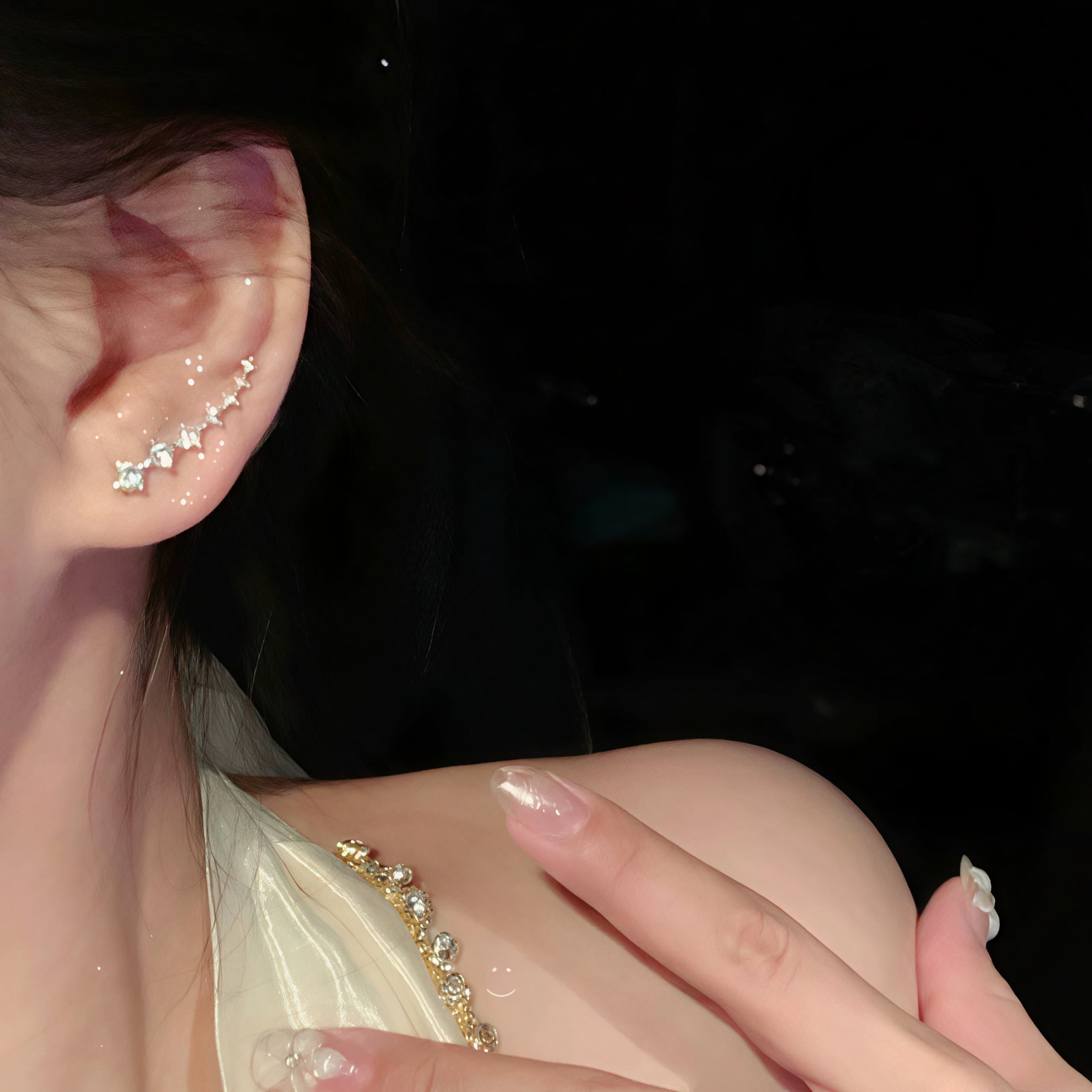 スター列ジルコニアイヤリングは、あなたの耳元を華やかに彩る素敵なアイテムです。星の輝きが、あなたの魅力を一層引き立て、日常をさらに特別なものにしてくれます!ぜひこのイヤリングで、あなたのスタイルを一新し、毎日をもっと楽しんでください!