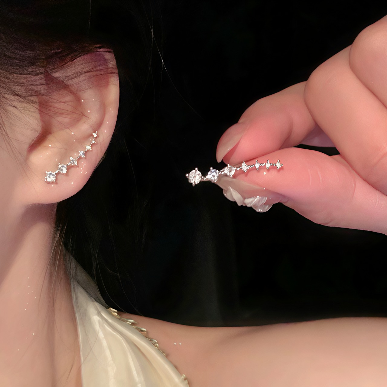 • 輝くジルコニアが星の列を描き、光を受けて耳元を美しく飾ります。