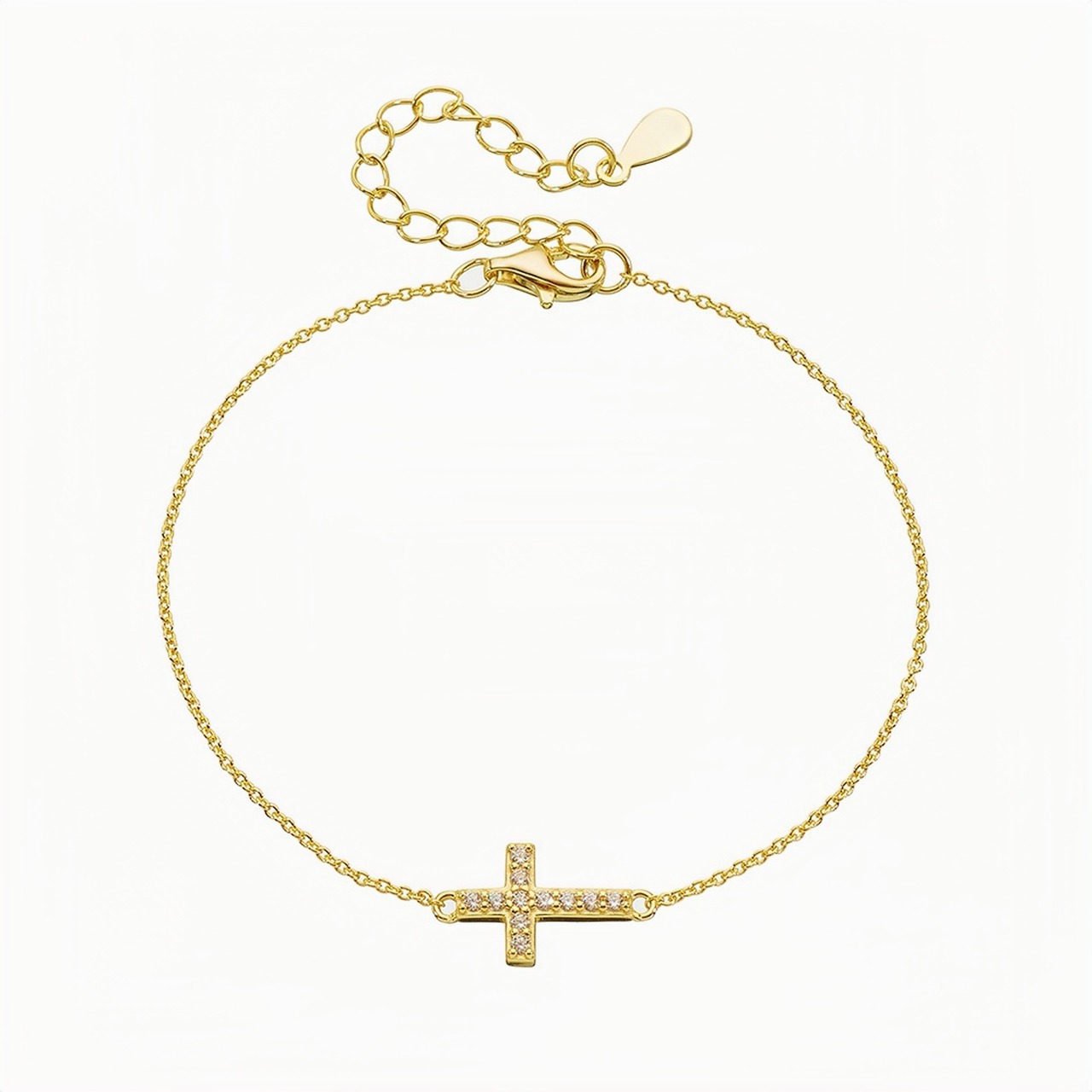 125.【人気定番】ゴールドクロスブレスレット 細身チェーン ミニパヴェワーク リサイズ可能 日常使い OK おしゃれコーデ必携