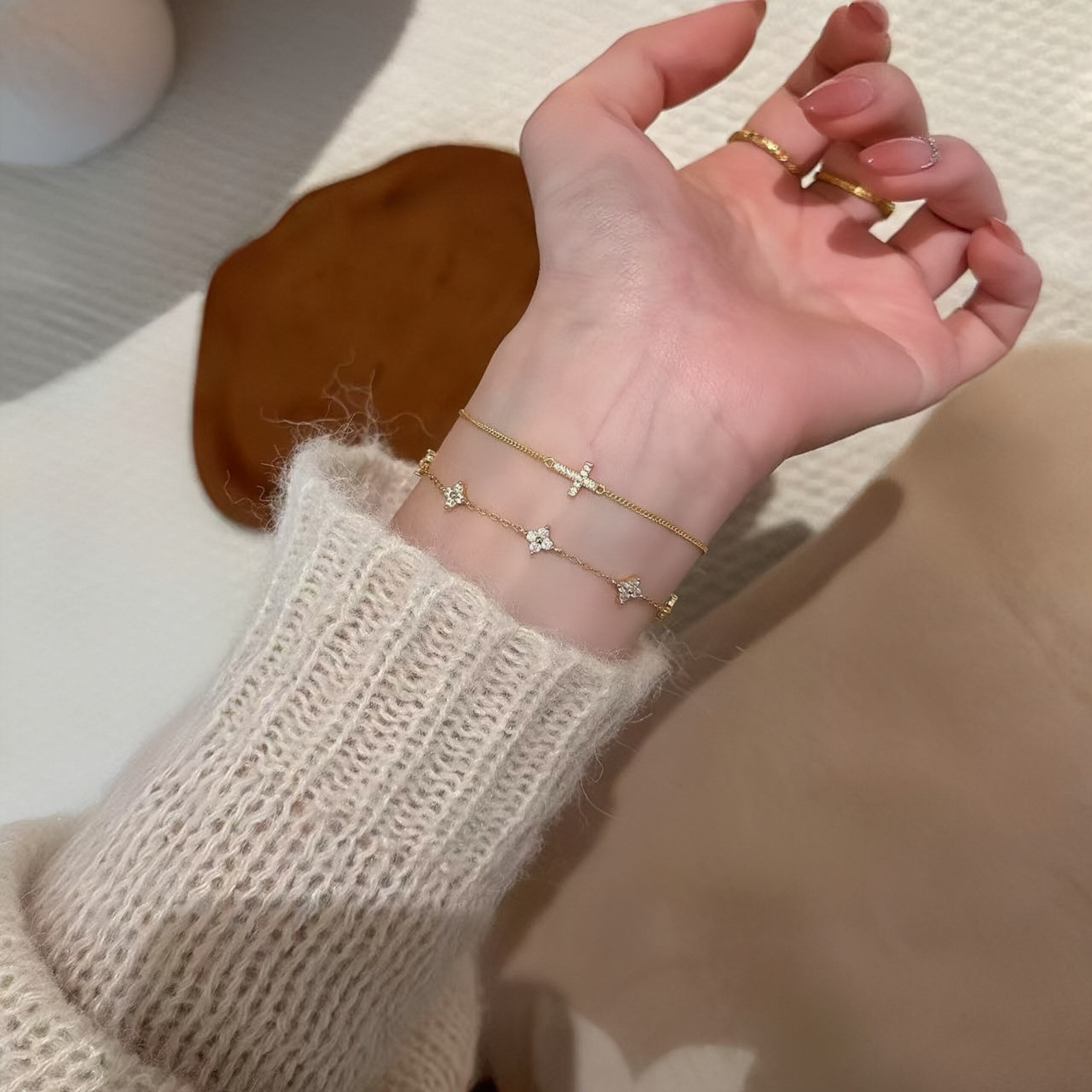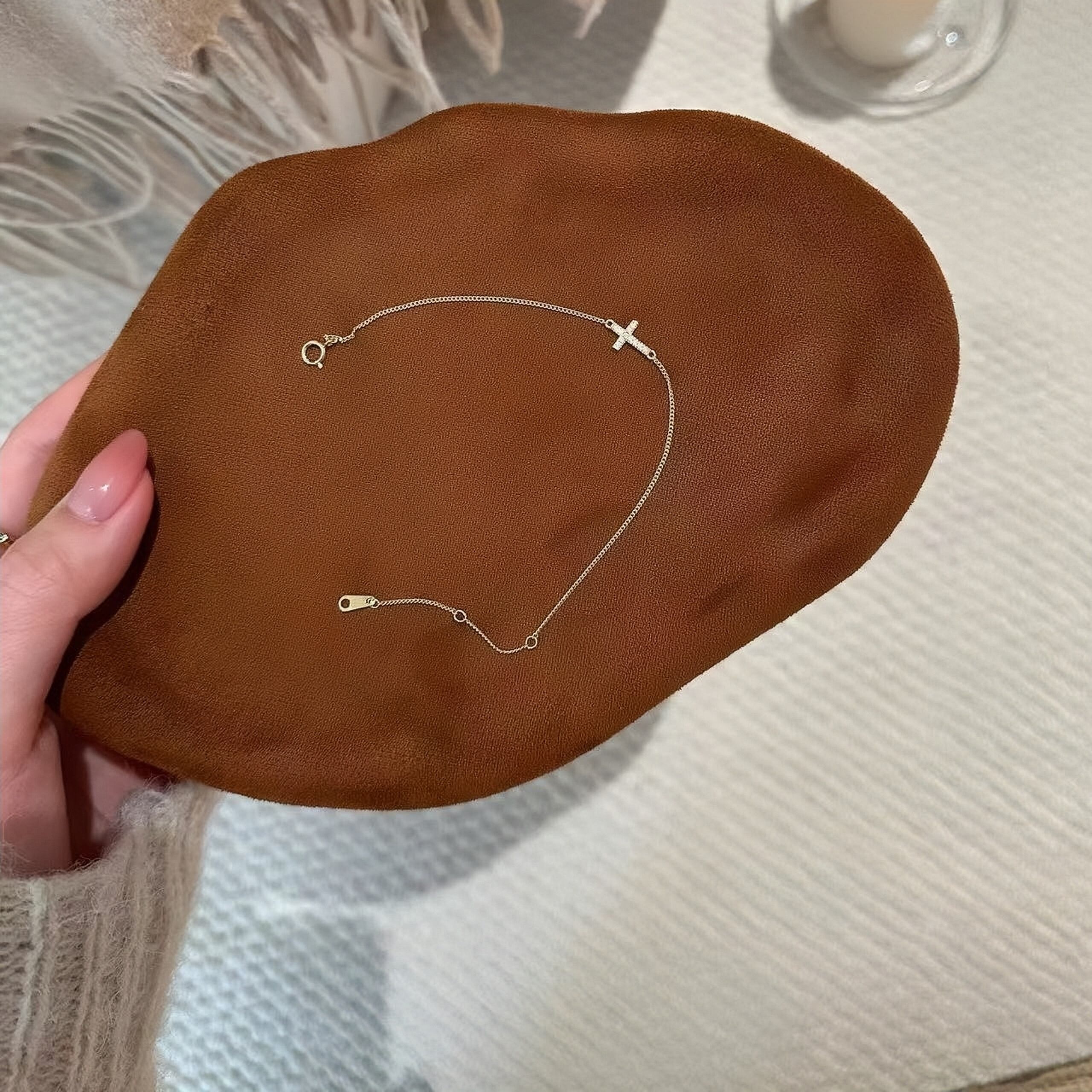 • 繊細な細身チェーンは、肌にしっくりと馴染み、クロスモチーフがさりげない存在感を放ちます。光を受けるたびに煌めき、あなたの手元に華やかさを添えるデザインです!