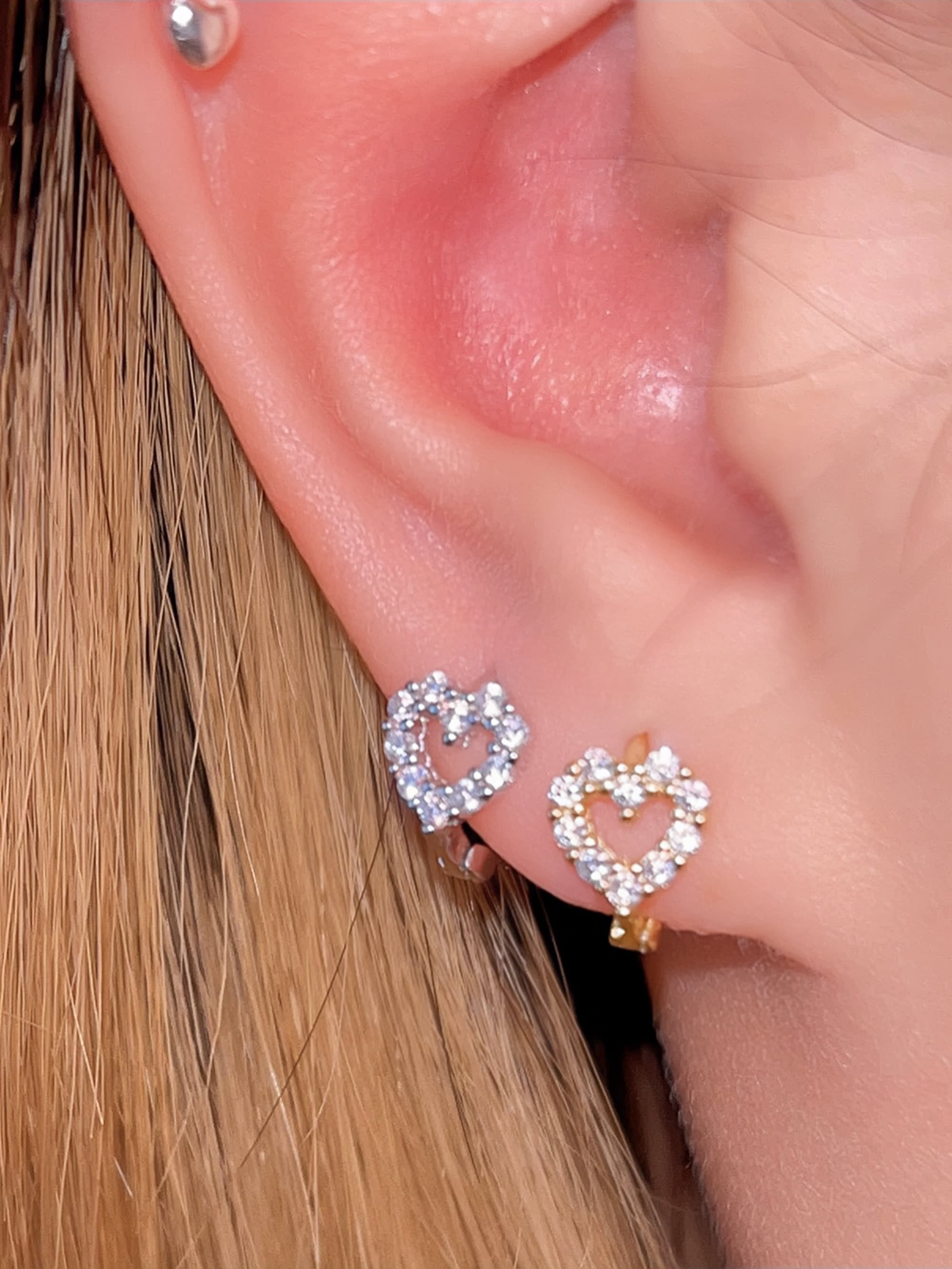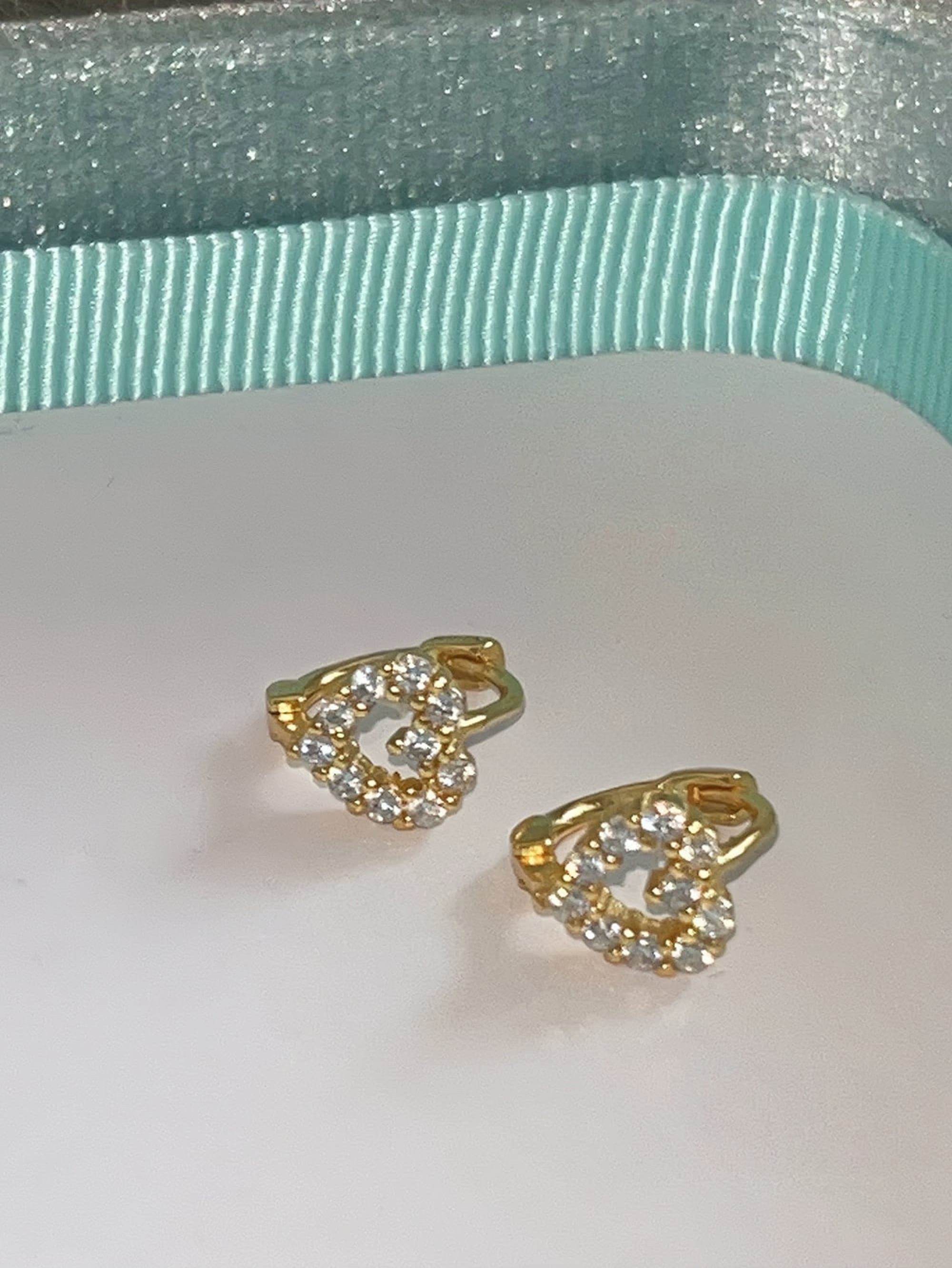 129.ハートミニホックピアス|キラキラジルコニア シルバー / ゴールド 2 カラー|日常コーデにぴったりの小さな幸せアクセ