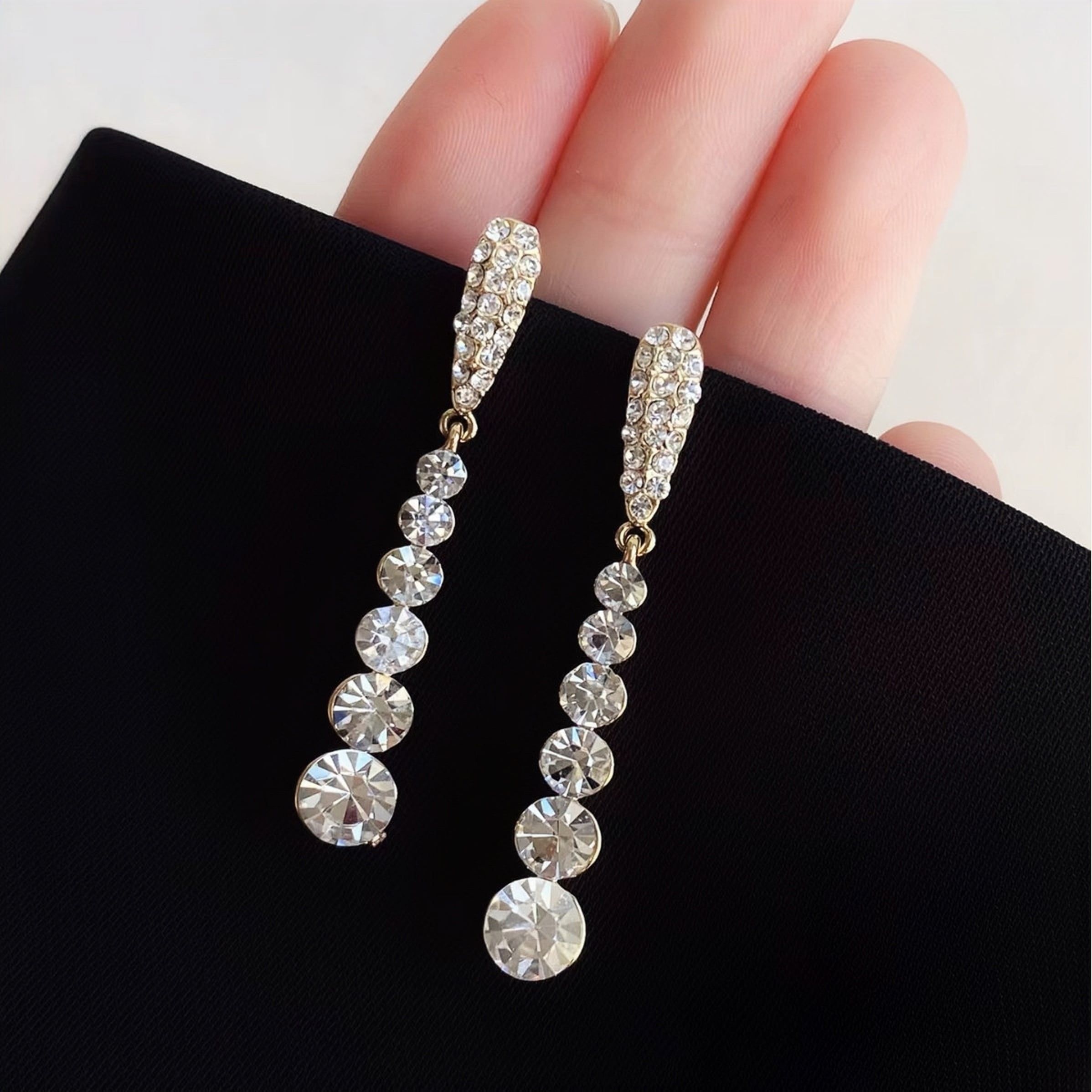 134.【人気ドロップ型】キラキラ丸カットジルコニアイヤリング ロングデザインで顔周りをスッキリ!フェミニンな輝きが毎日を華やかに タイトルのポイント(日本消費者の好みに合わせた設計) 「人気ドロップ型」:日本でロングイヤリングの中でもドロップ型は定番人気なので、瞬時に関心を引きます 「キラキラ丸カット」:ジルコニアの輝きと形状を具体的に表現し、「見た目の華やかさ」を強調(日本女性は「キラキラ」系アクセサリー