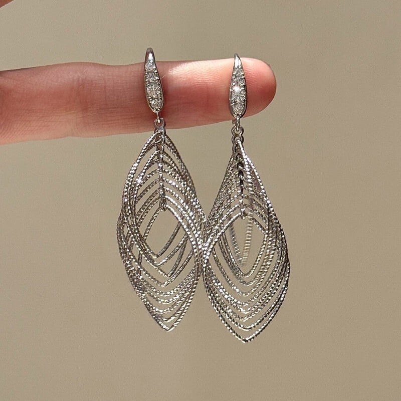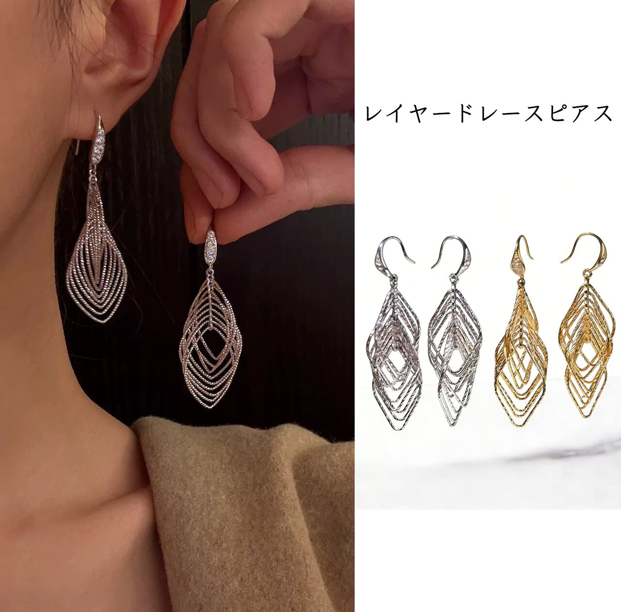 【羽根のような柔らかさ】レイヤードレースイヤリングは、耳元を優しく輝かせる美しいアクセサリーです!シルバーとゴールドの2カラー展開で、パーティーやデートでの大人の華やかさを演出します。