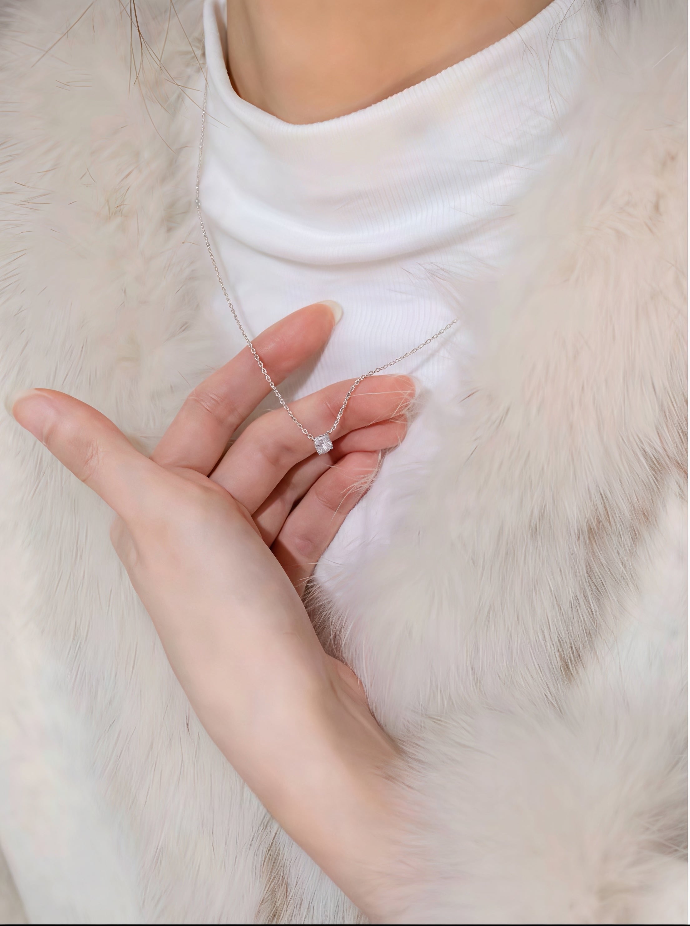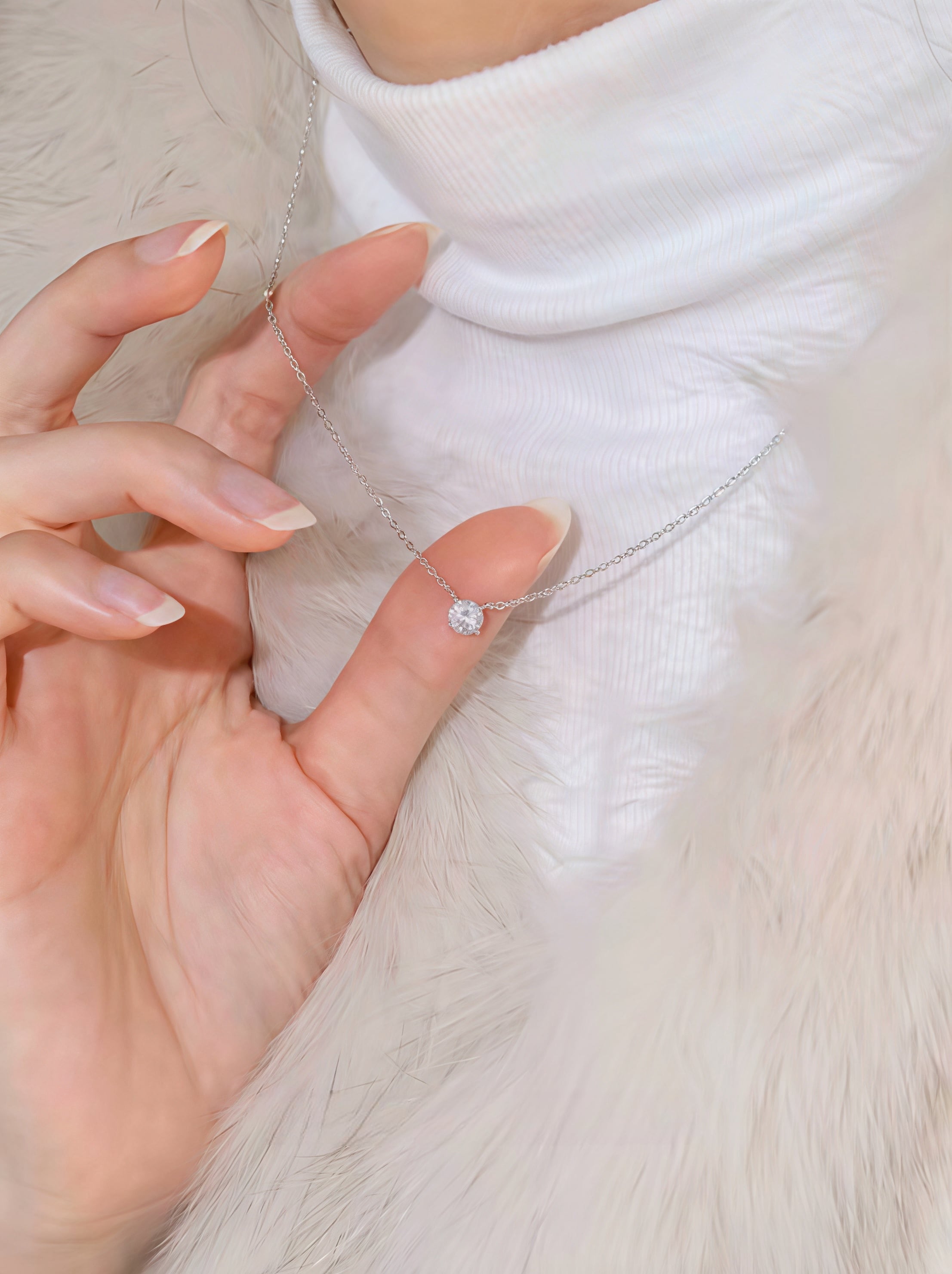 138.鎖骨にほんのり光る 925 銀シングルダイヤネックレス|細チェーン肌に優しくて、クリアカットのダイヤが自然にキラキラ。日常のシャツからデートのワンピまで合うし、大人可愛い仕上げに最強