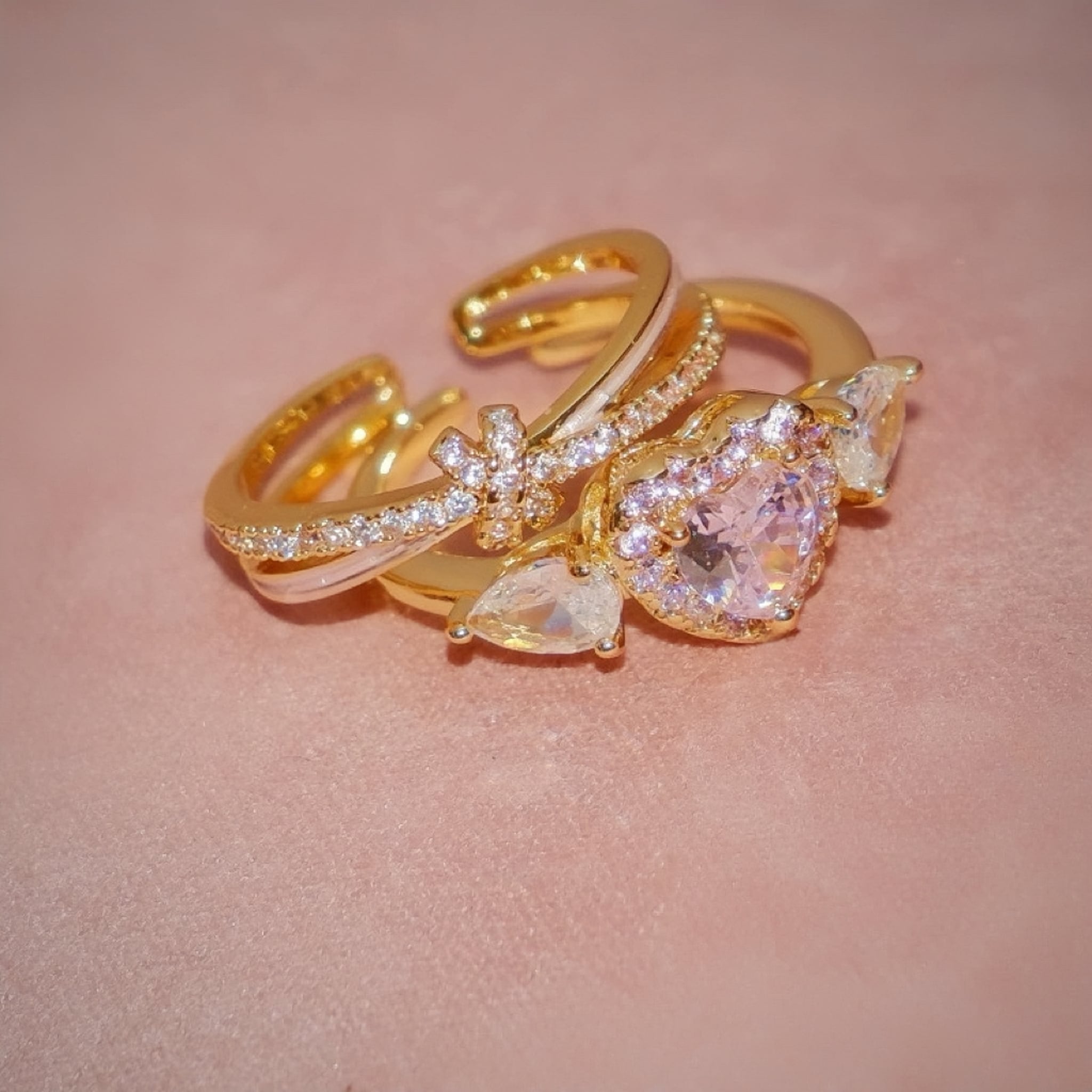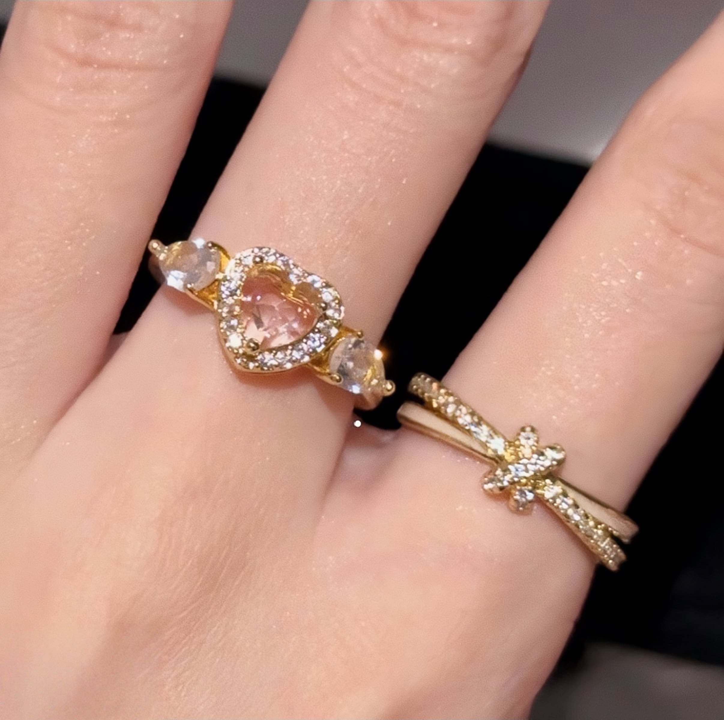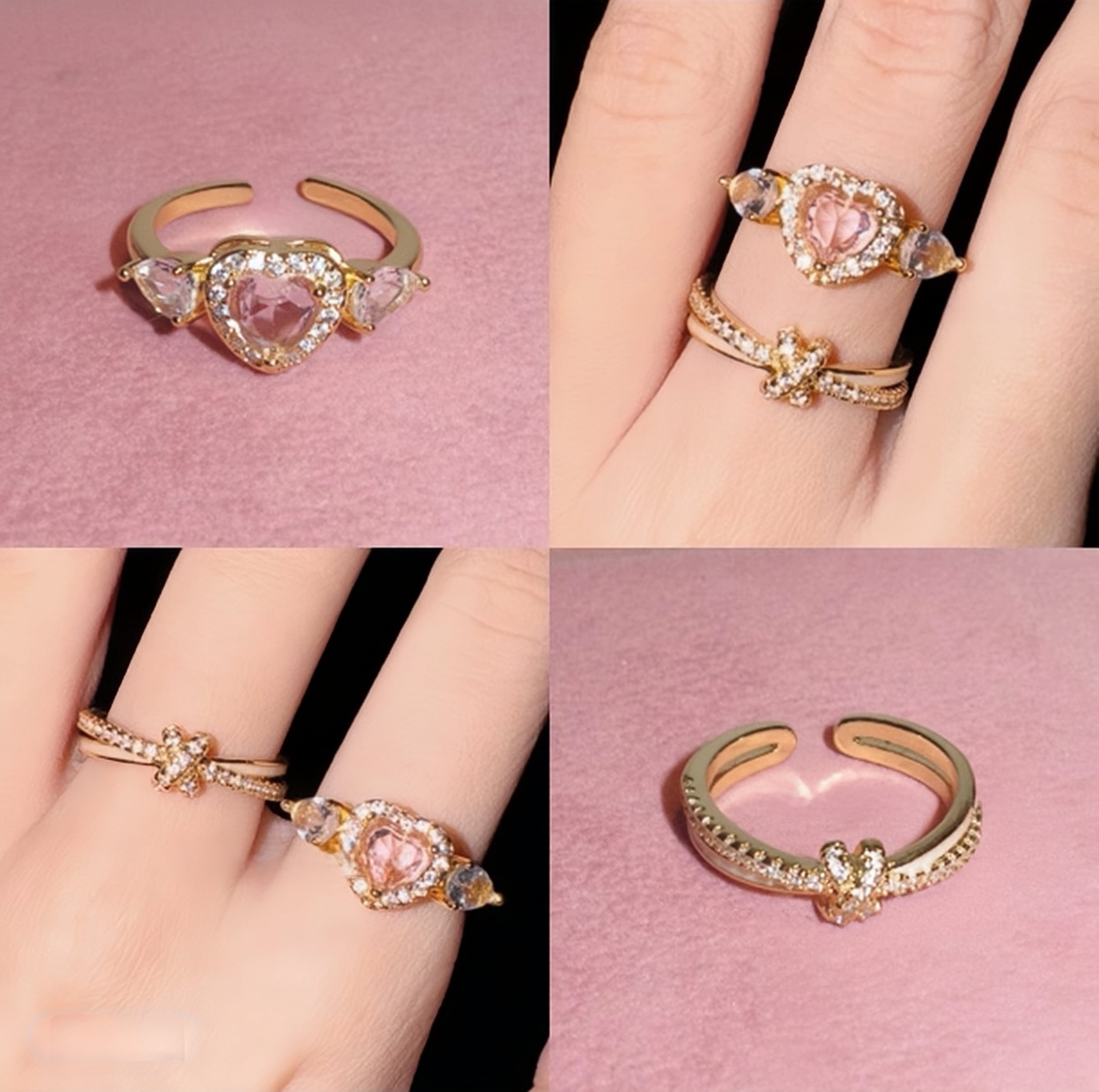 139.SNS 話題!ピンクハート重ねリングセット|無ニッケル肌優しい × 耐食メッキ デート・カフェで手元がインスタ映え 重ね / 単体両用