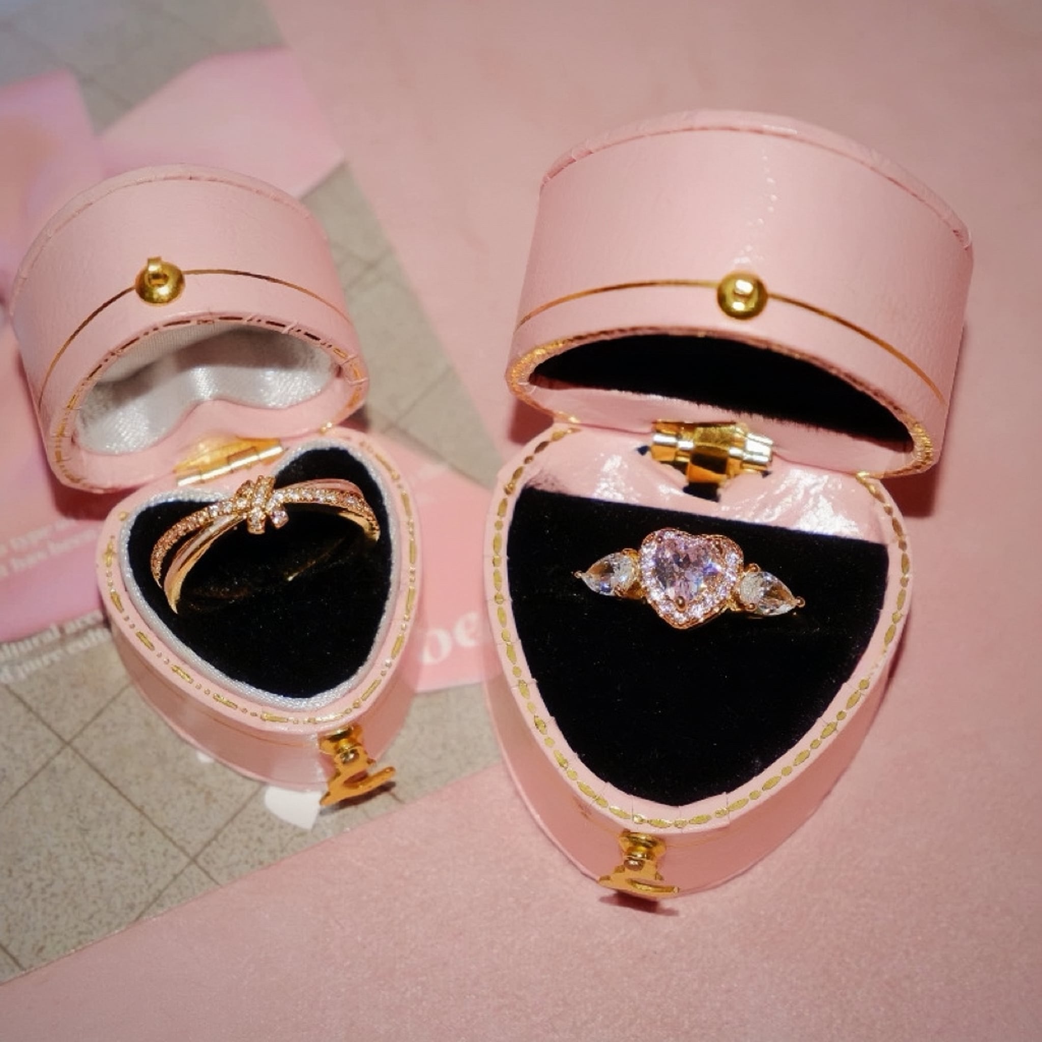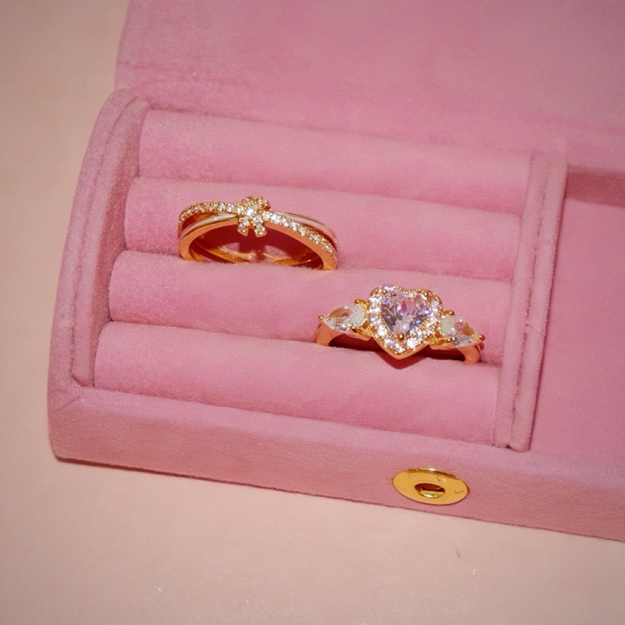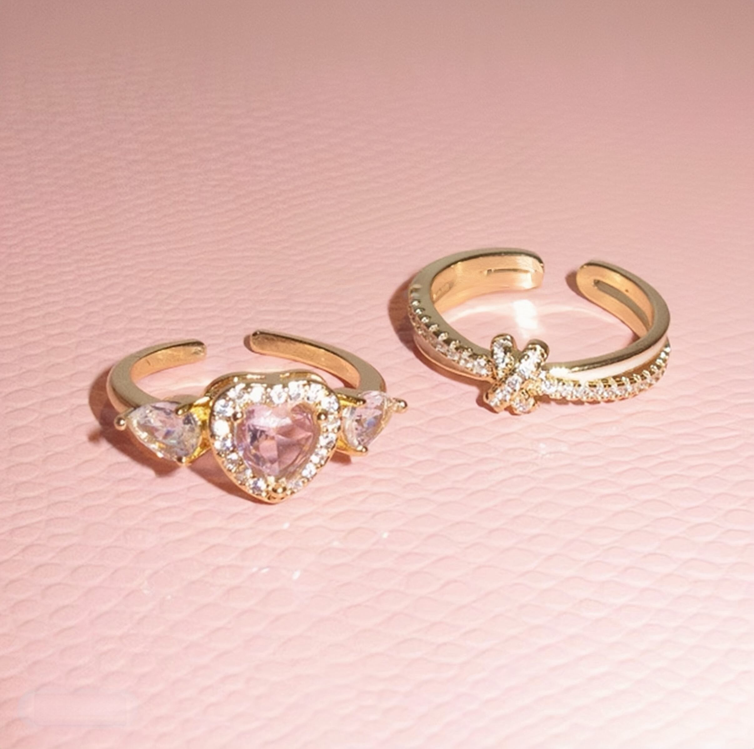 139.SNS 話題!ピンクハート重ねリングセット|無ニッケル肌優しい × 耐食メッキ デート・カフェで手元がインスタ映え 重ね / 単体両用