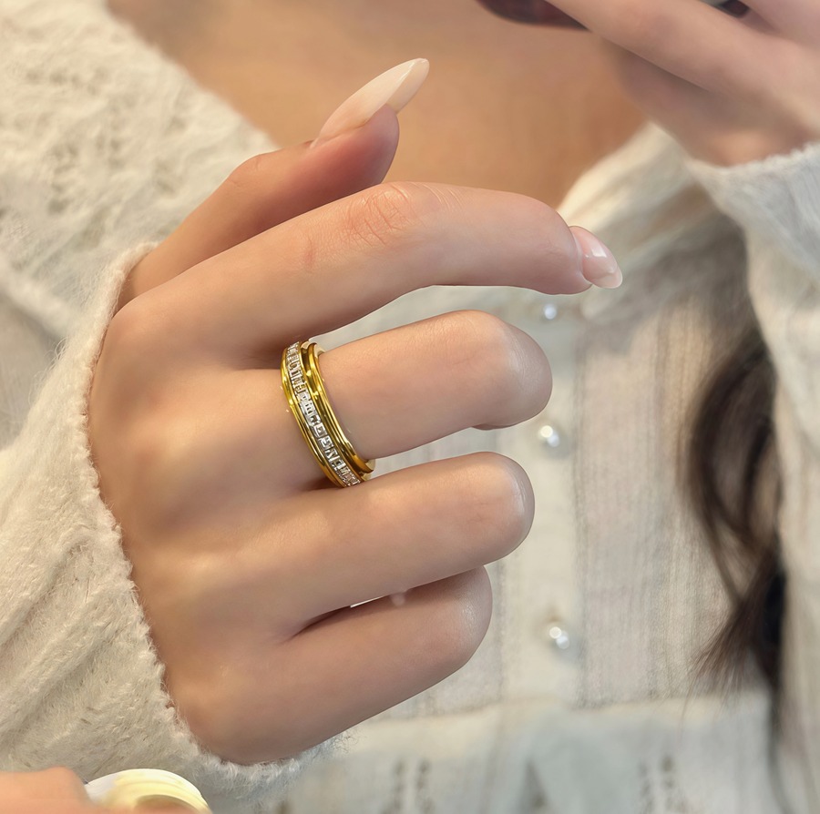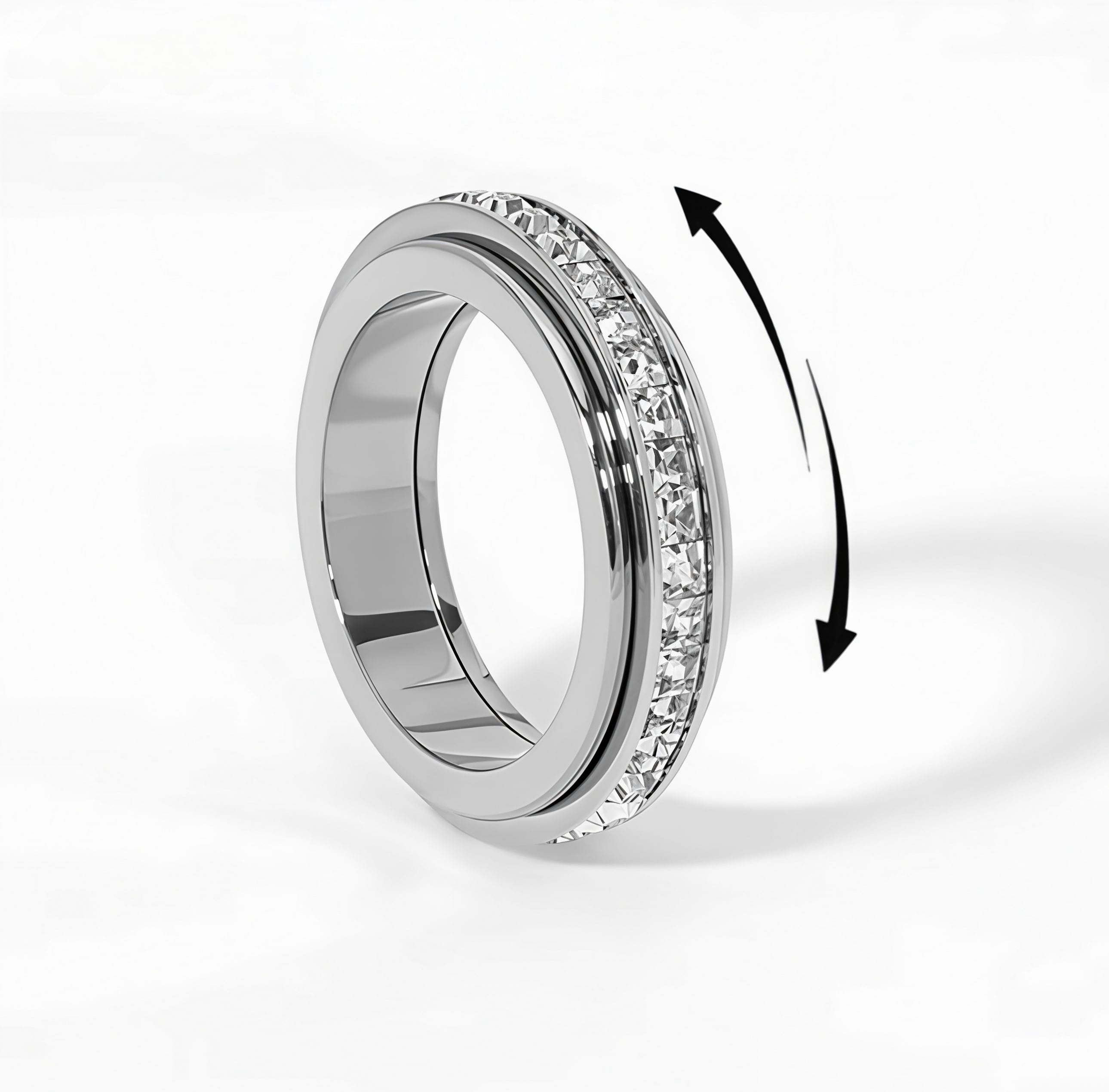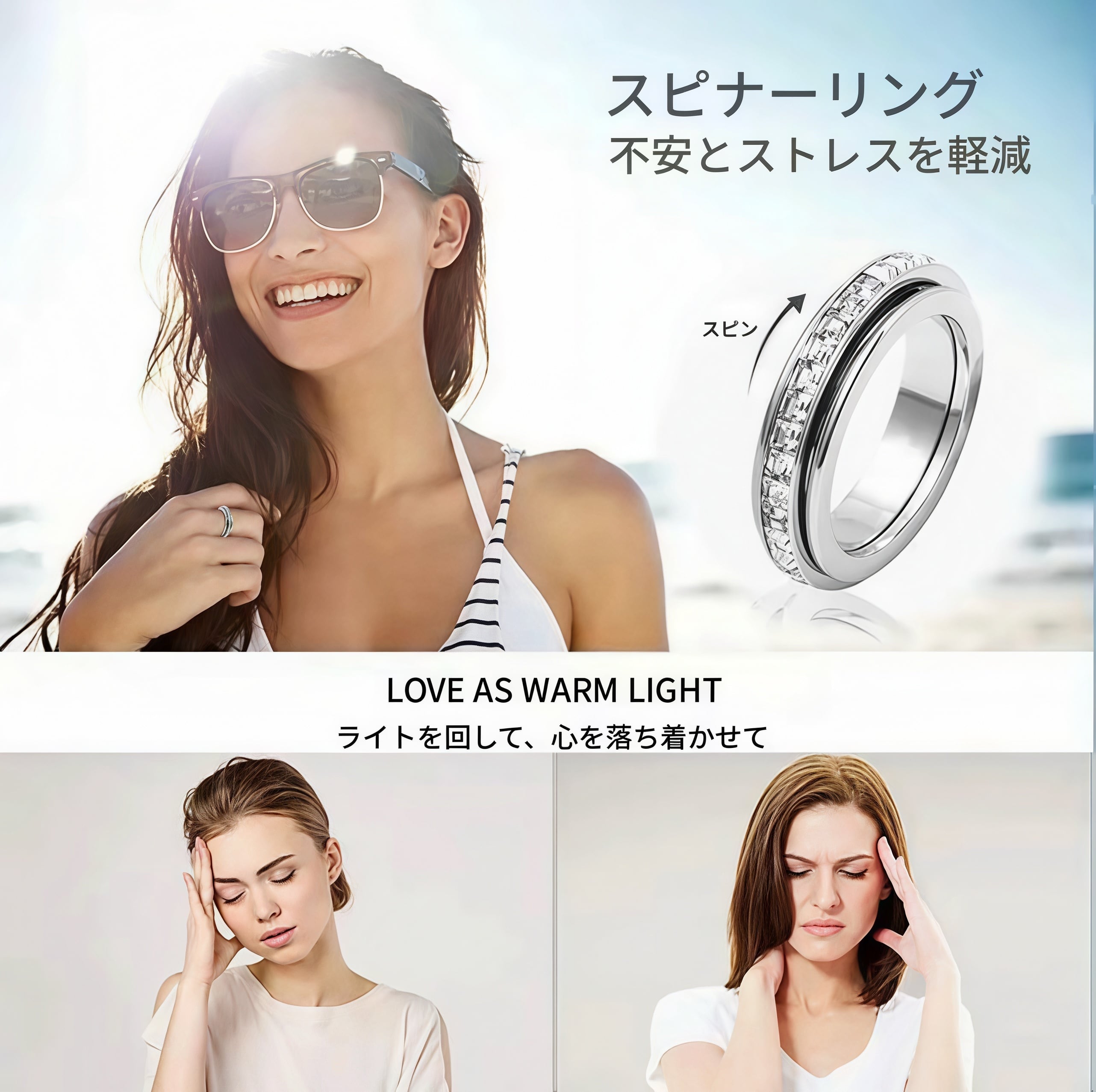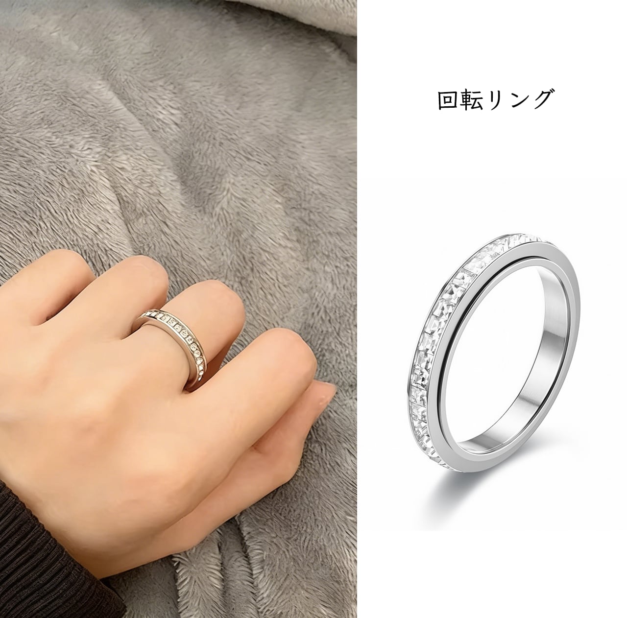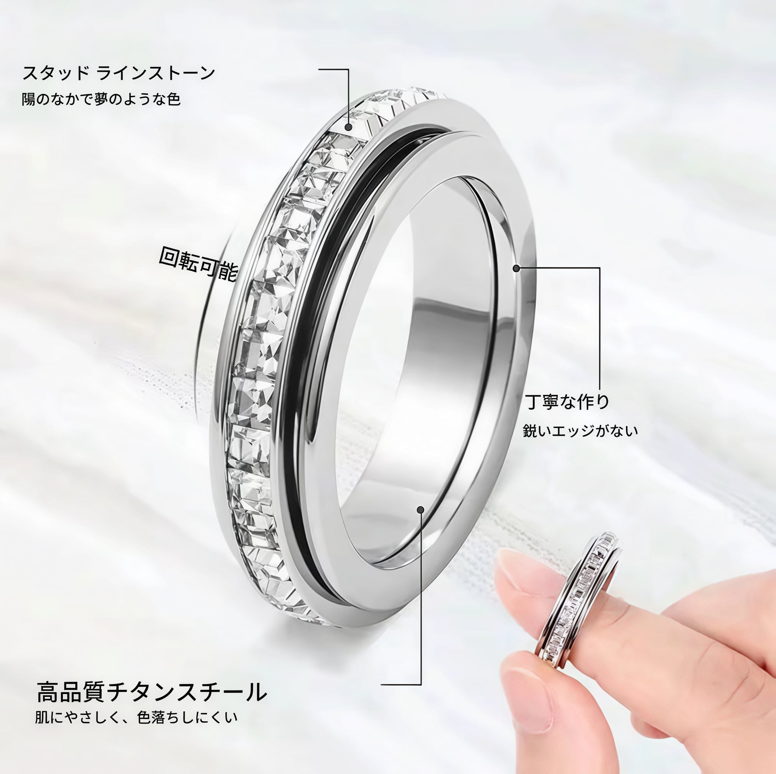 【ストレスフリーな魅力】「3色から選べる!男女兼用・回転リング」は、心を穏やかにする不安緩和リングです!チタンスチール製で耐久性があり、キュービックジルコニアの輝きがあなたの指先を美しく彩ります。