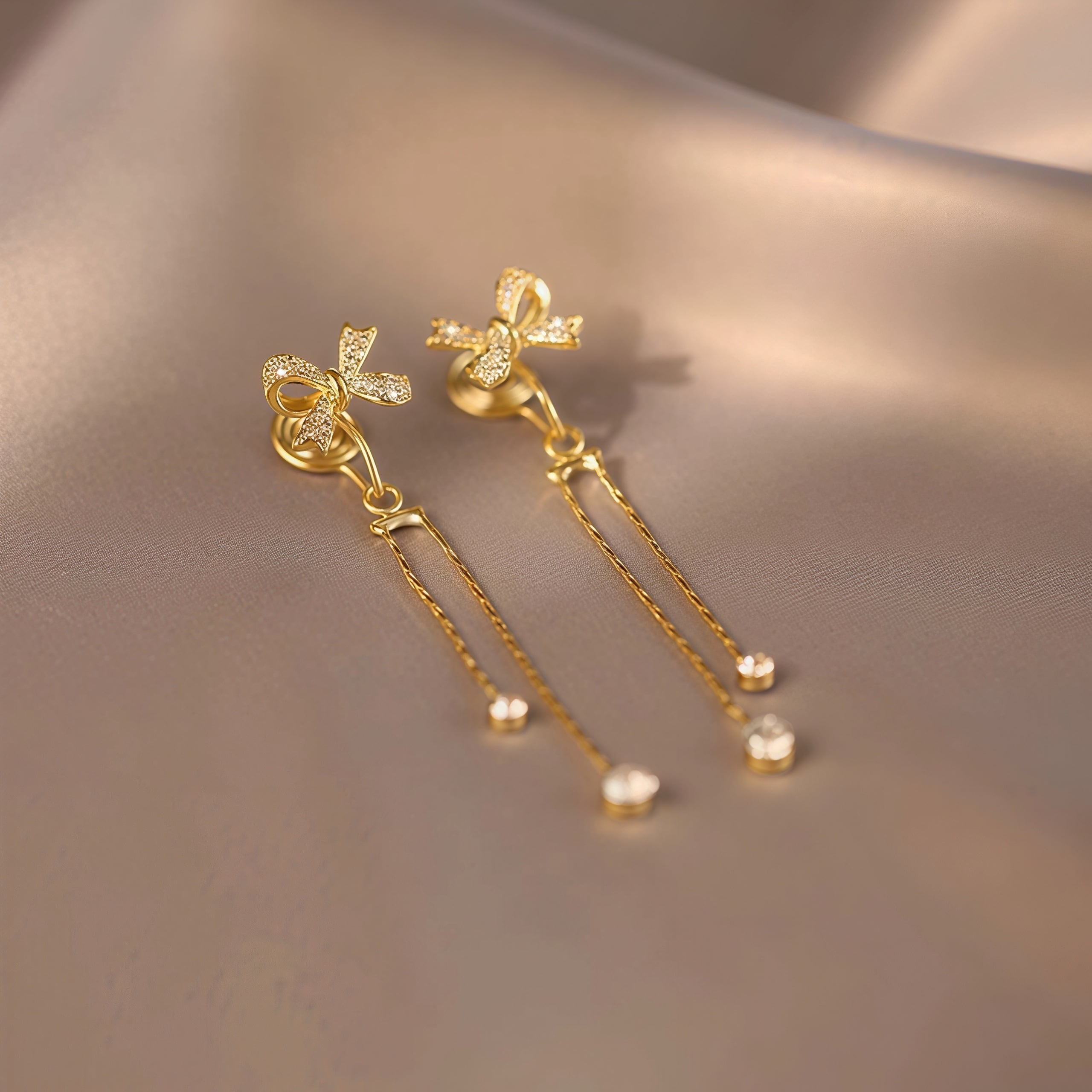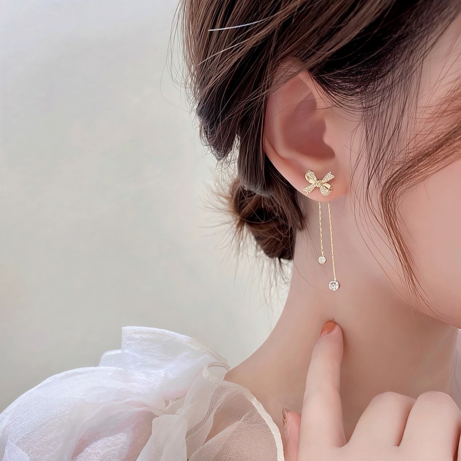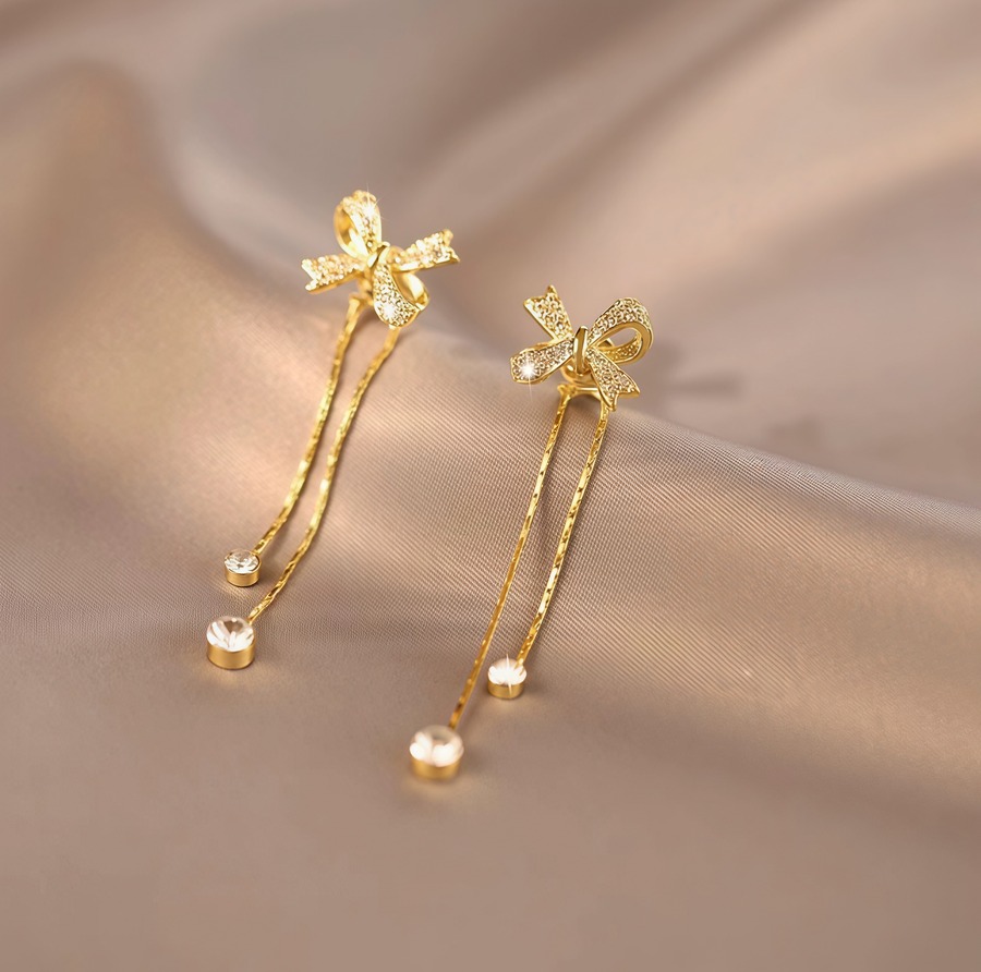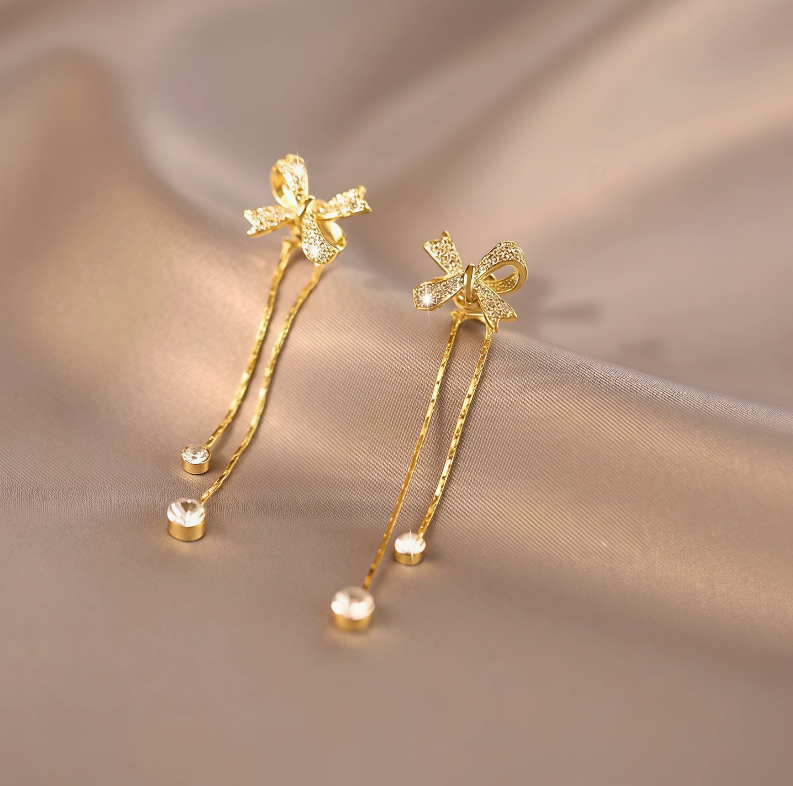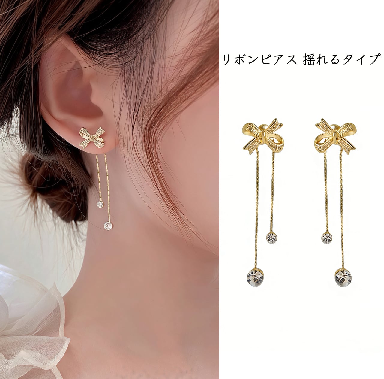 ギフトにおすすめ|リボンピアス 揺れるタイプ|上品で女性らしいデザイン