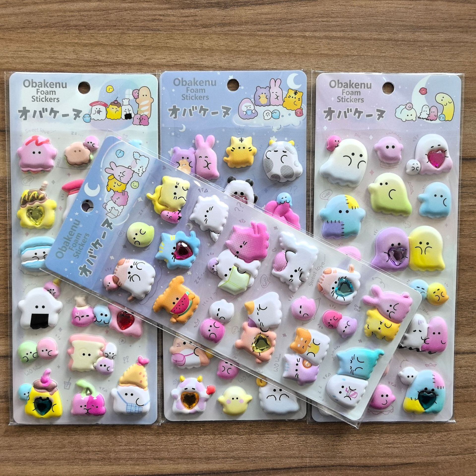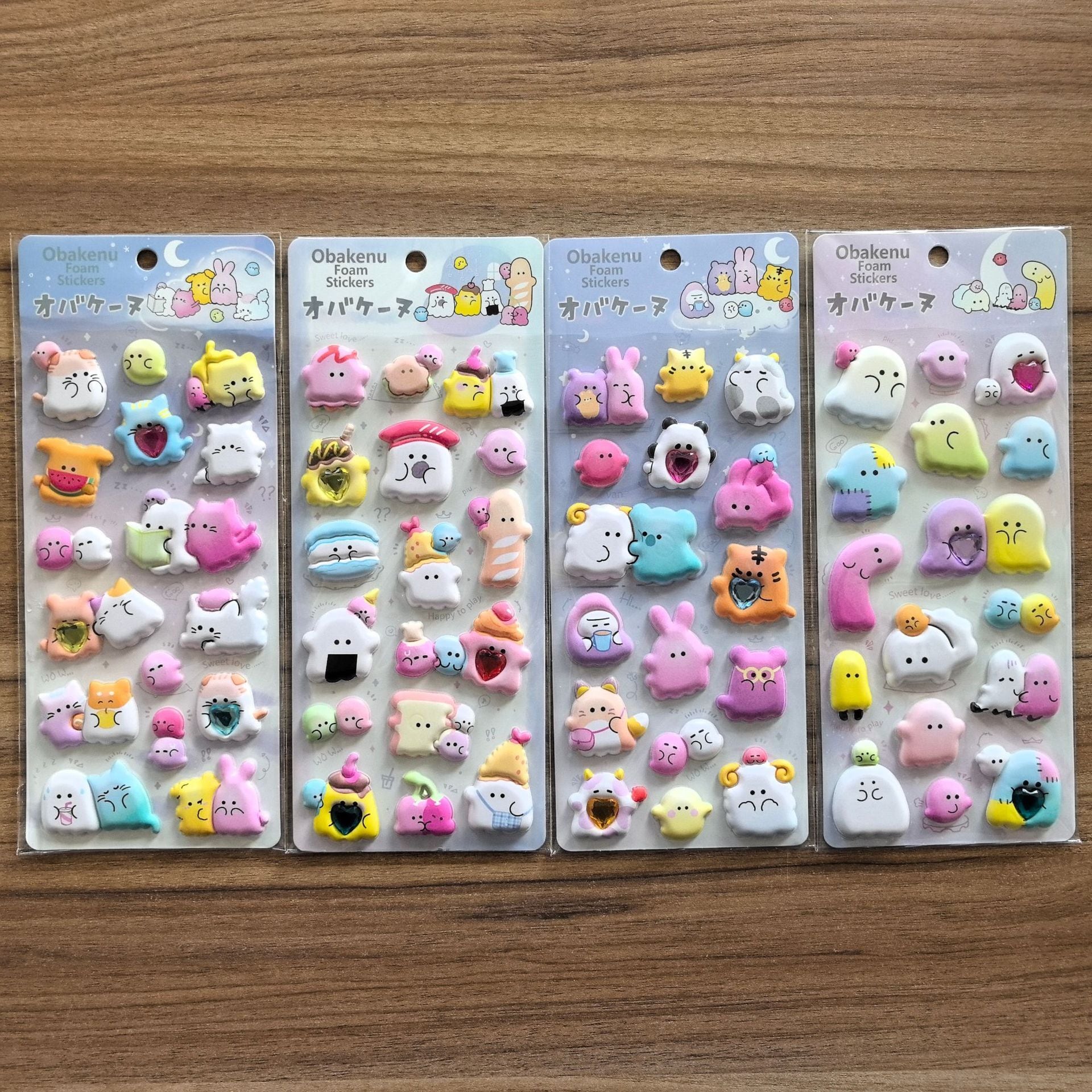 157.ぷっくり立体キャラシール|4枚セット|ゆめかわオバケ&アニマル|3Dフォームステッカー|手帳・スマホ・ノート用