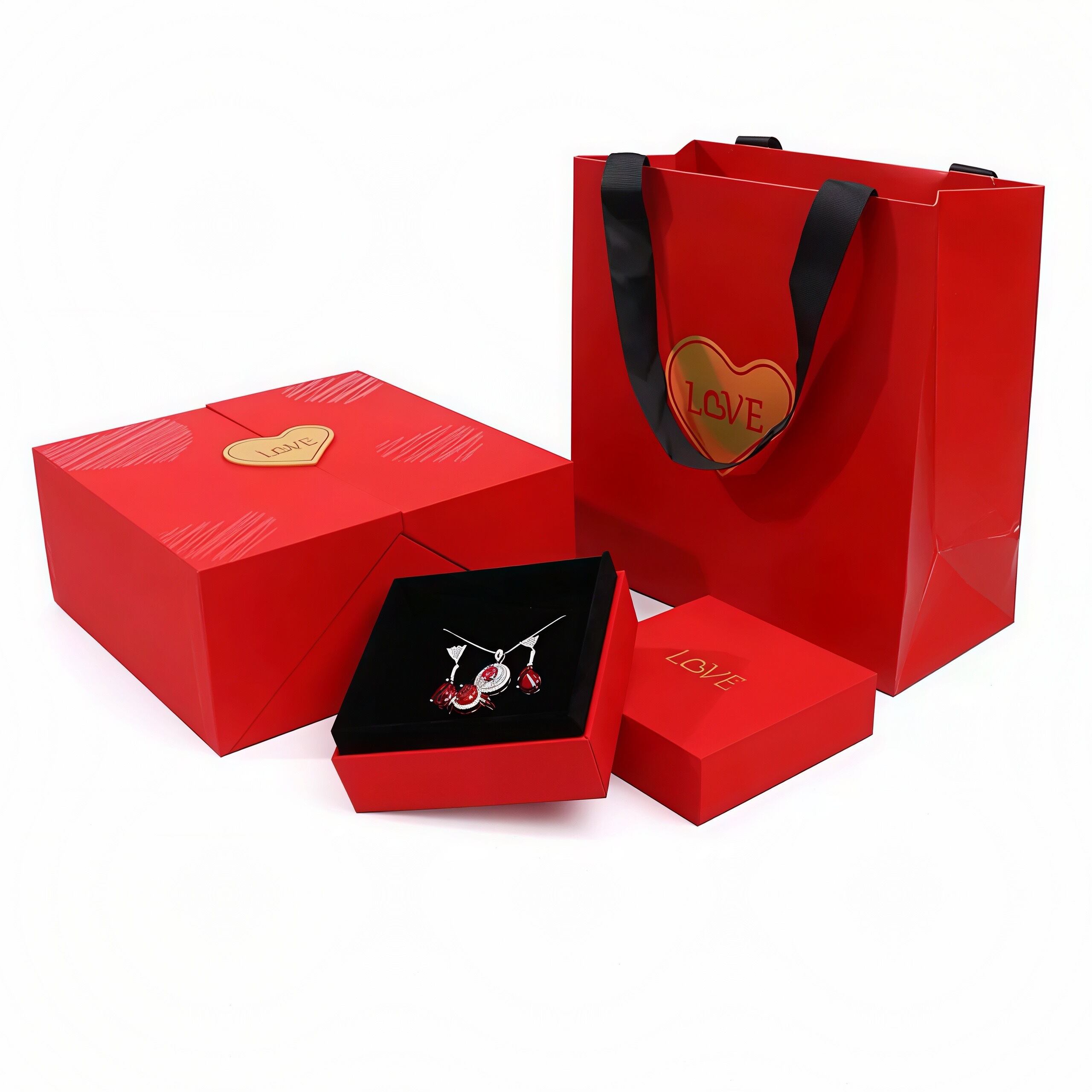 166.ジュエリー専用サプライズギフトボックス|ネックレス・リング・ピアス対応 ローズデザイン 上品なローズモチーフで、開いた瞬間にロマンチックな演出。ネックレス・リング・ピアスを美しく収納でき、特別な日のギフトにぴったりです。