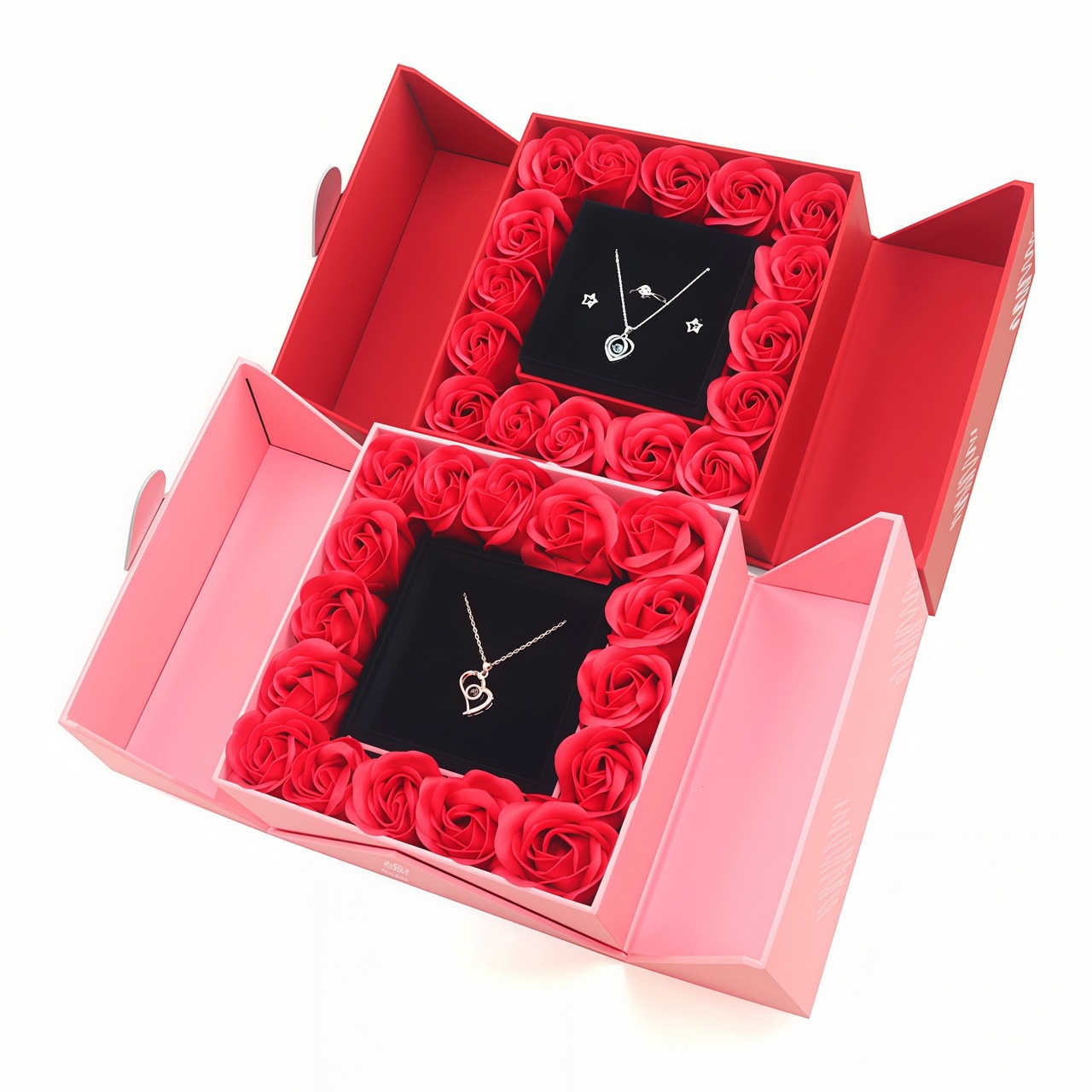 ジュエリー専用サプライズギフトボックスネックレス・リング・ピアス対応|ローズデザイン