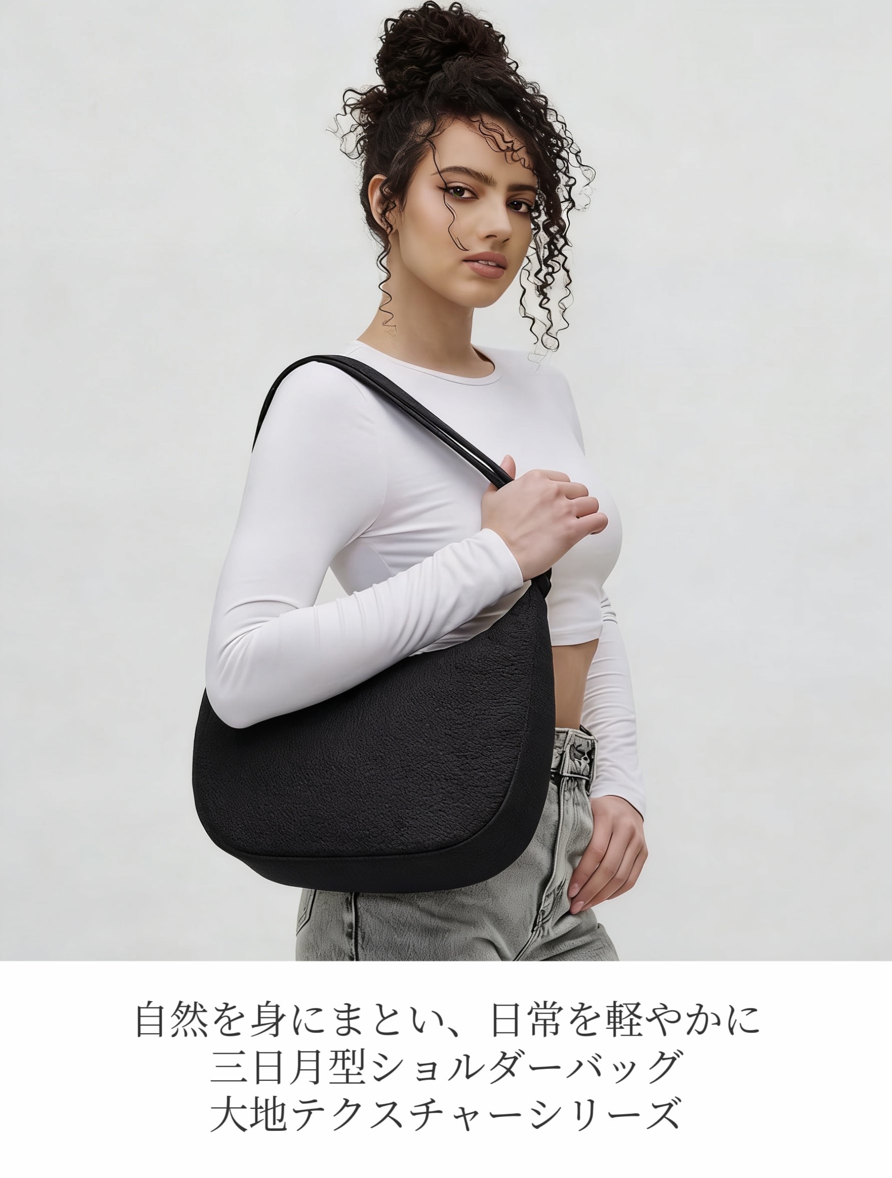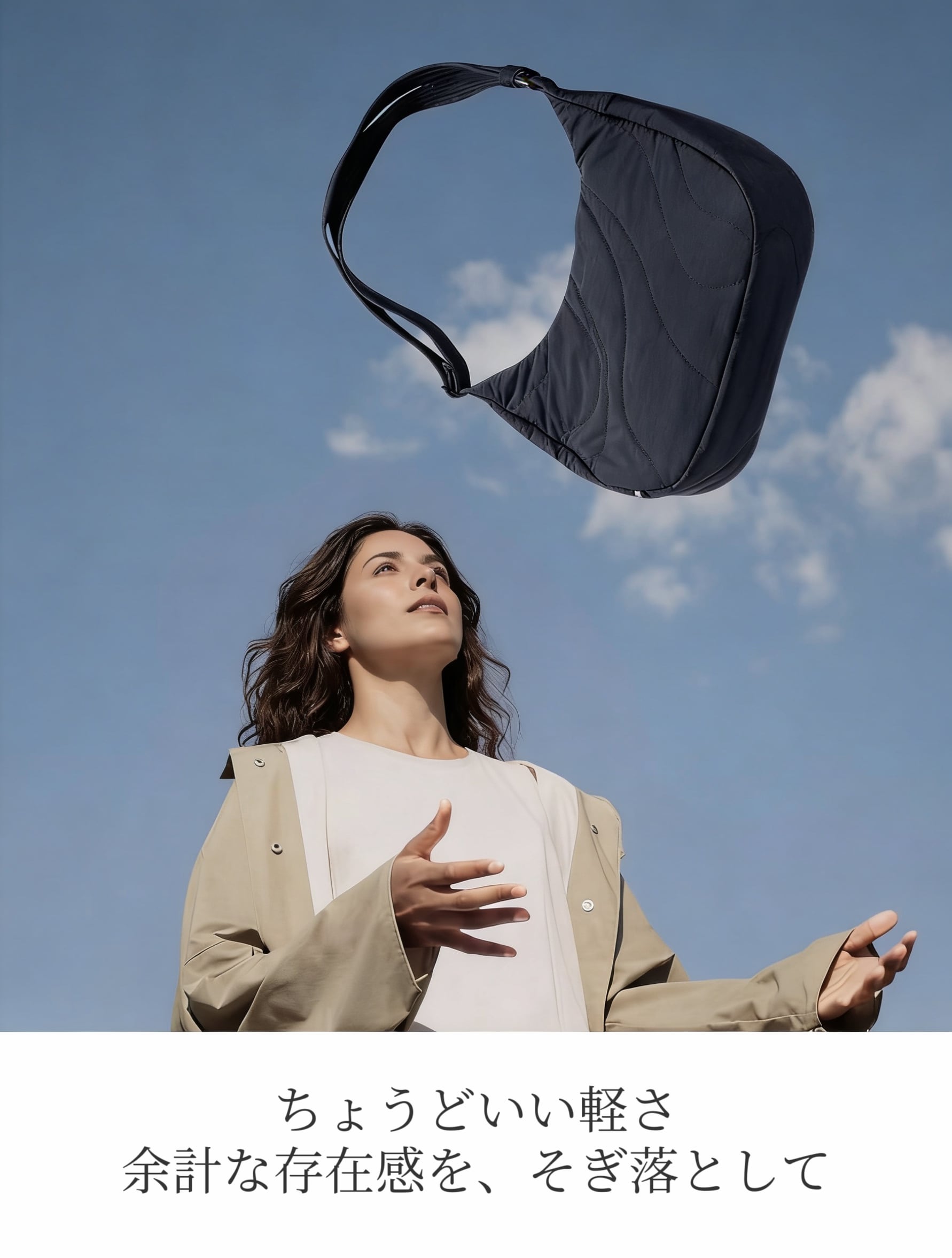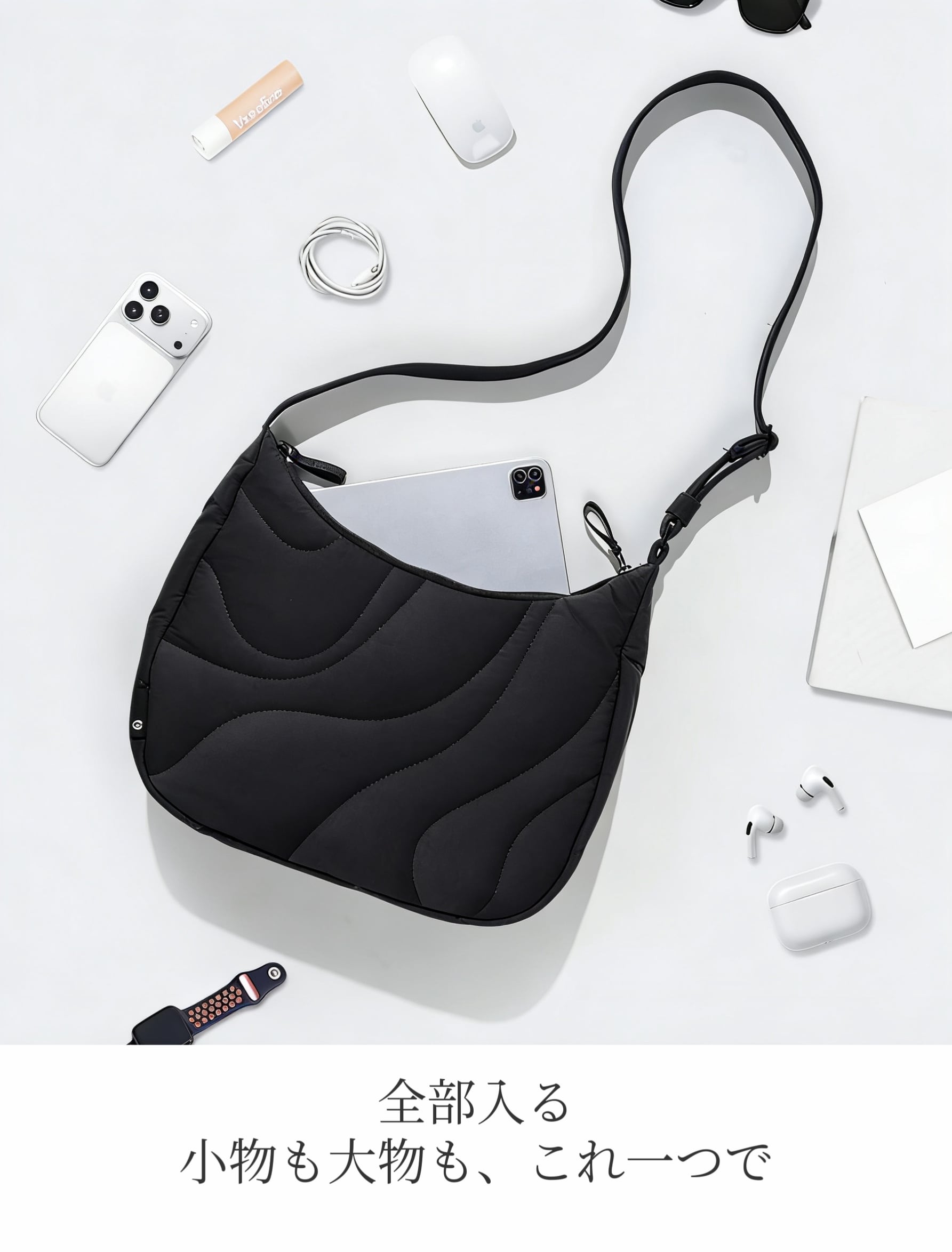 199.三日月型ショルダーバッグ 軽量 大容量 仕切り収納 撥水 ナイロン シンプル 上品 通勤 通学 レディース