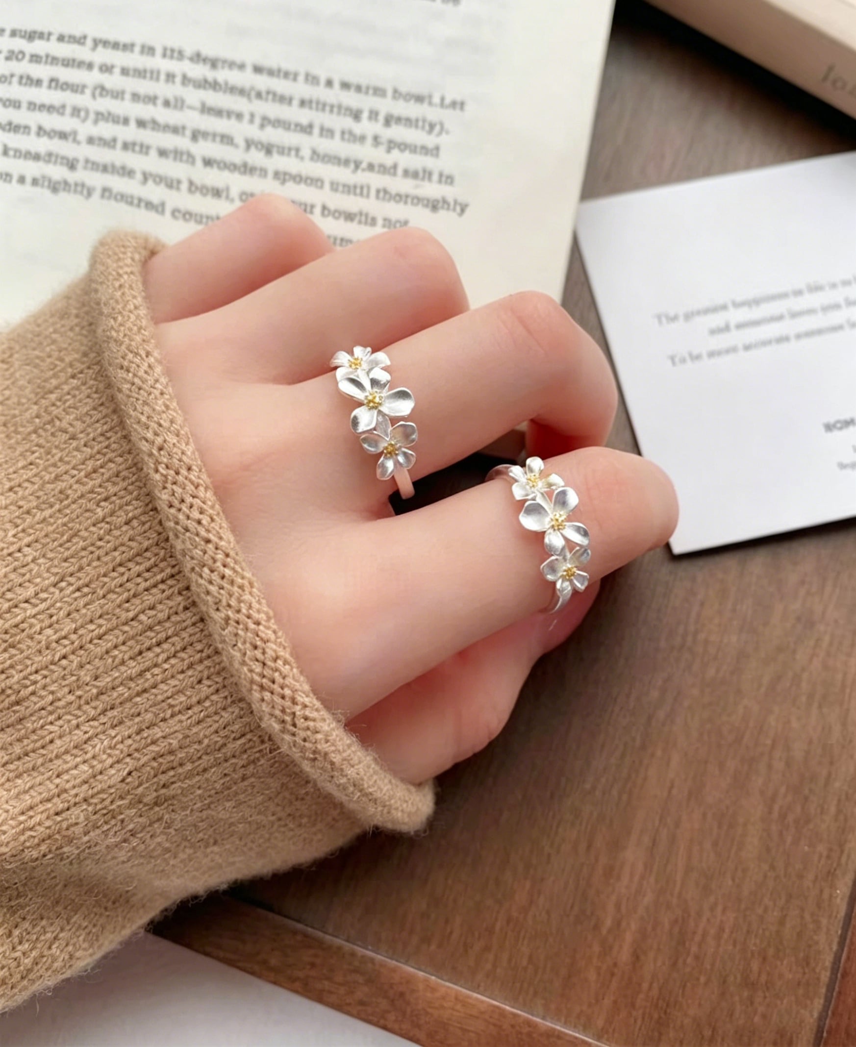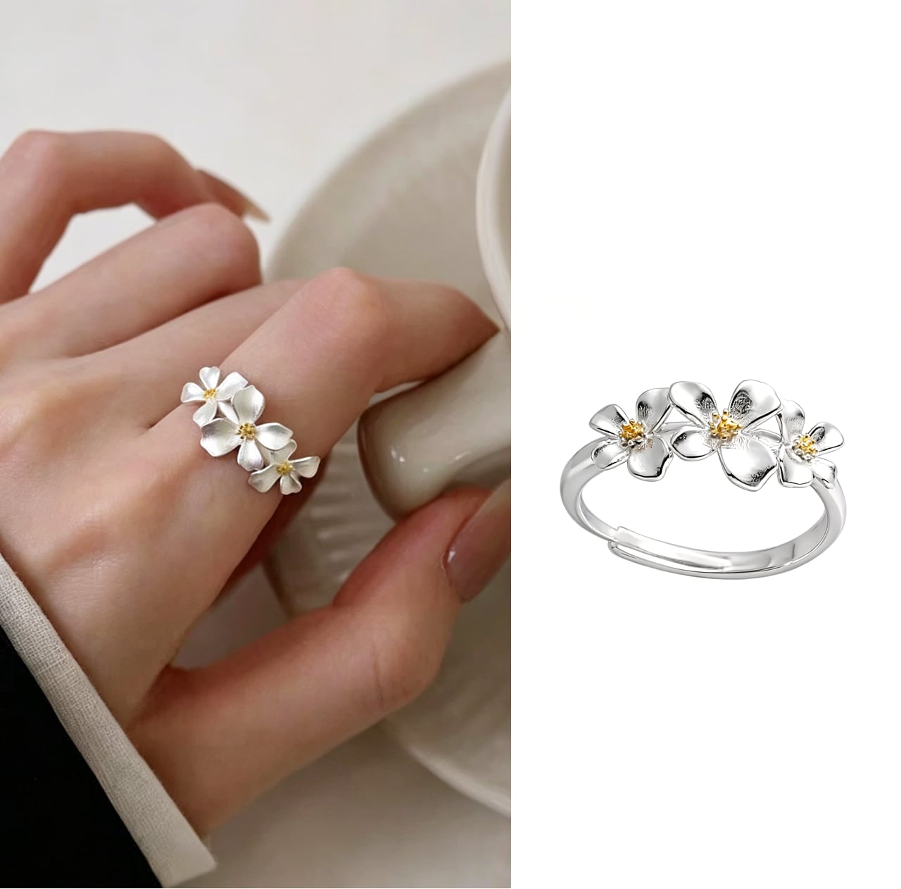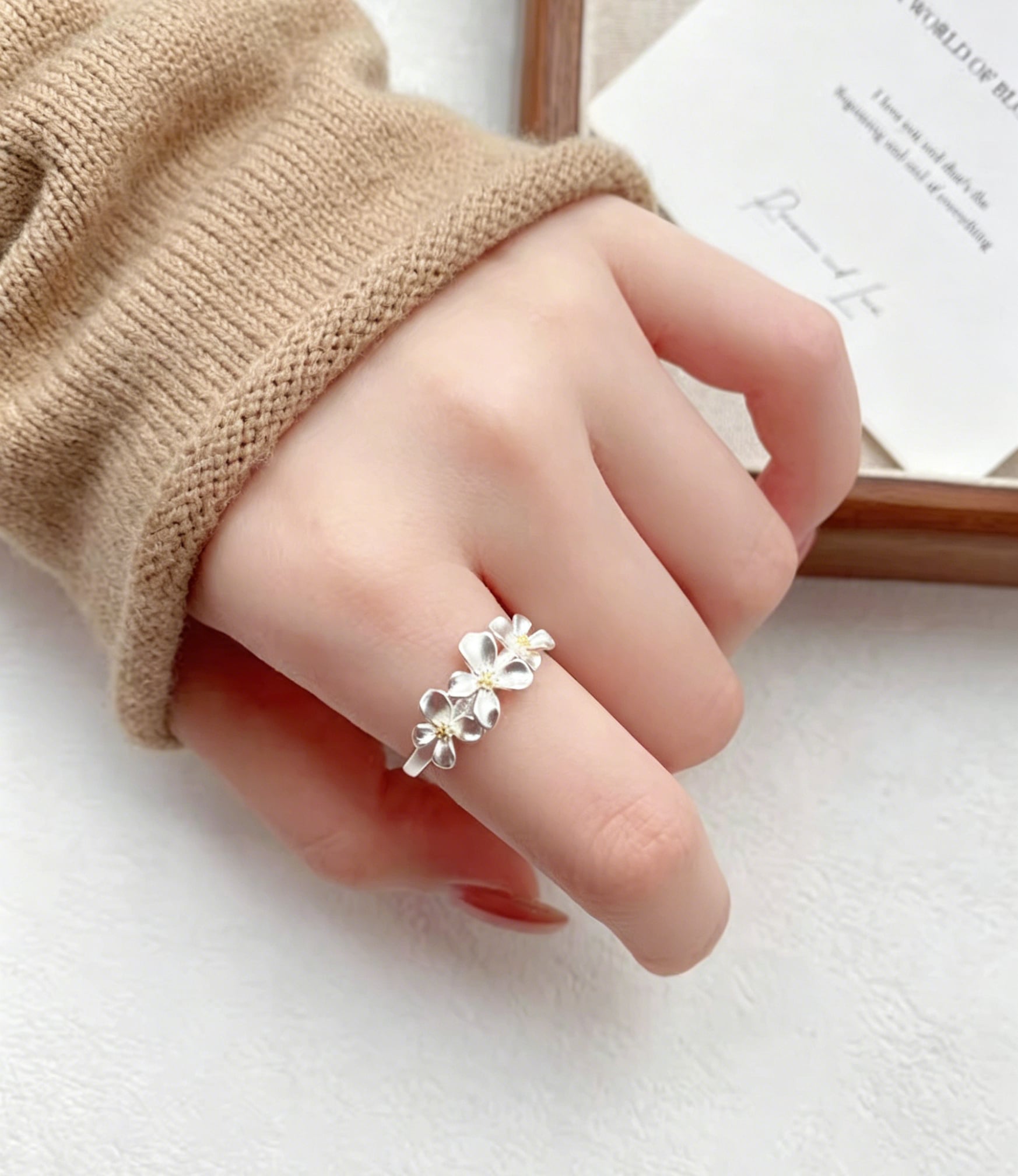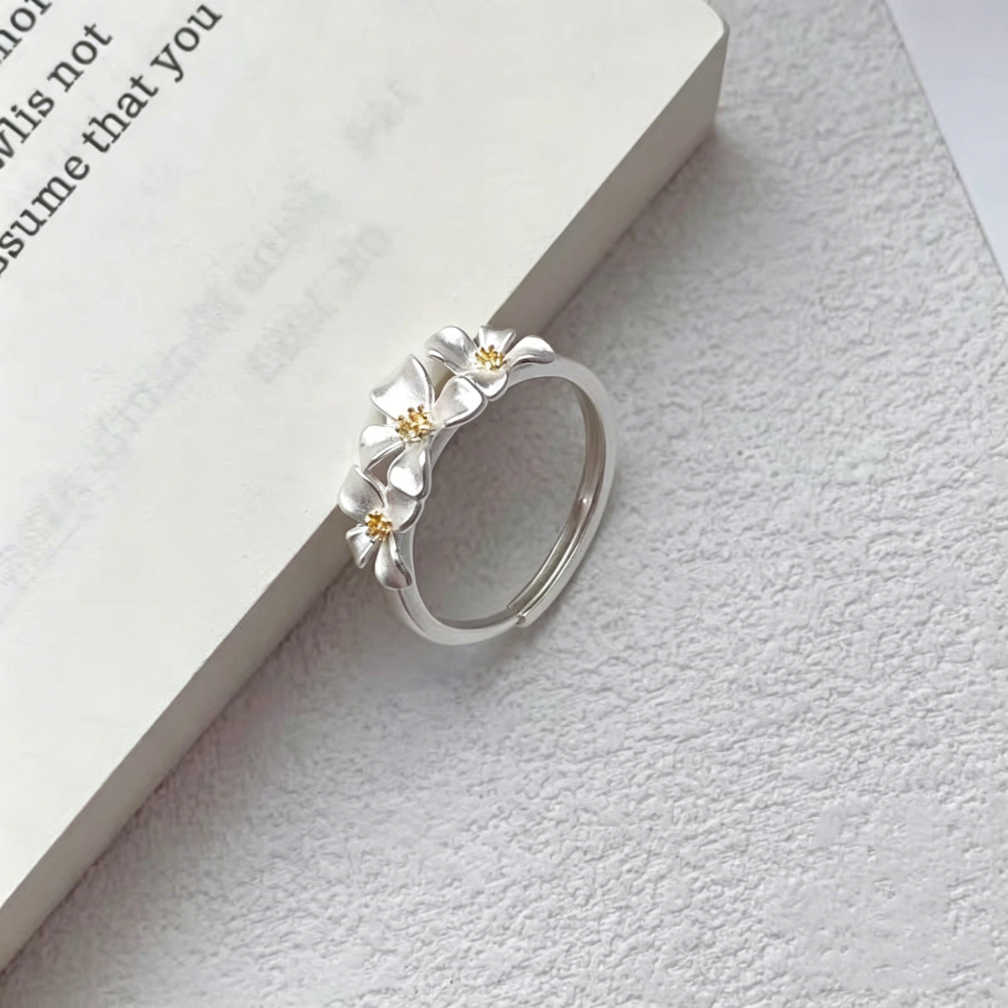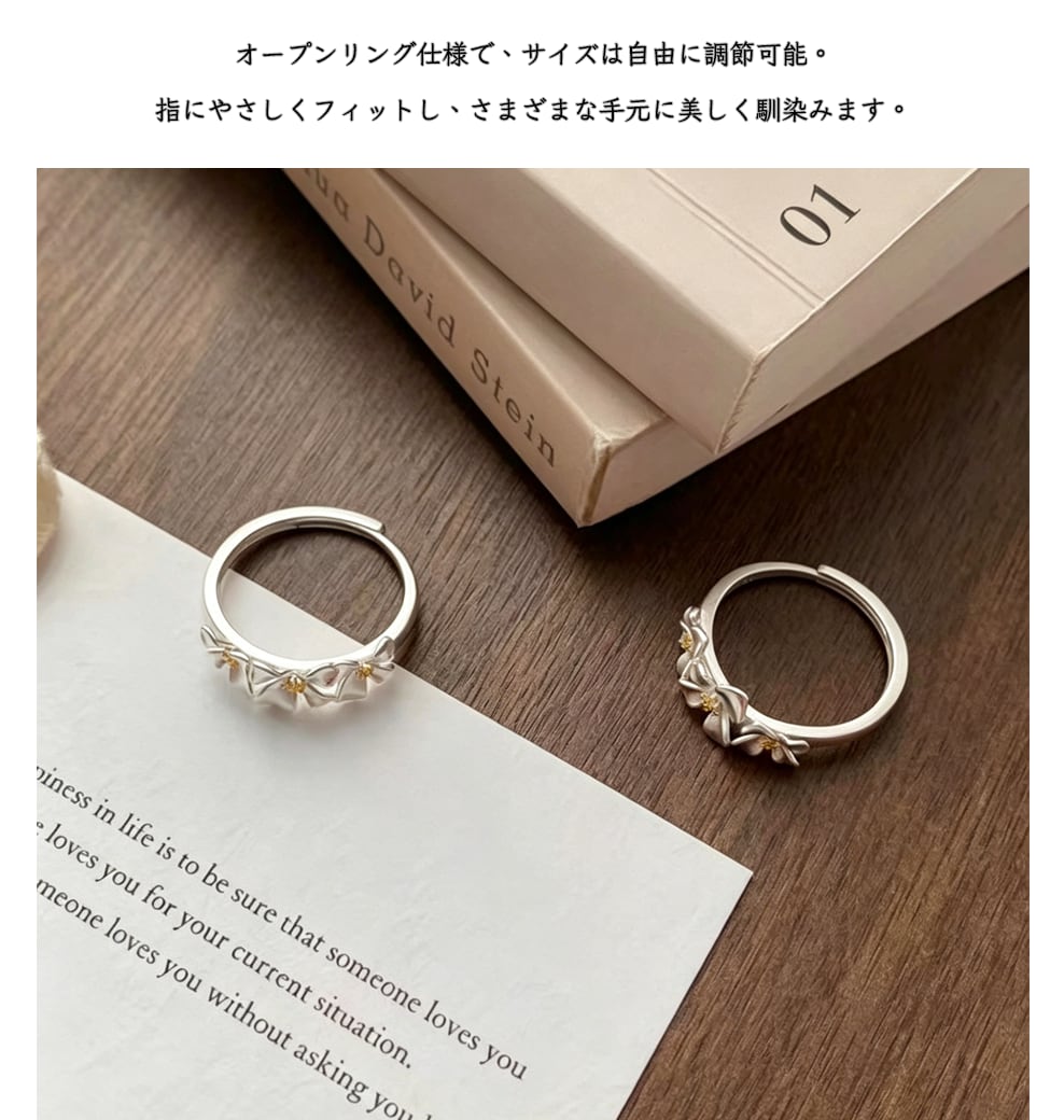 200.クチナシモチーフ オープンリング レディース 上品 高見え フラワーデザイン 可憐で華やか 女性用 アクセサリー ギフトにも最適