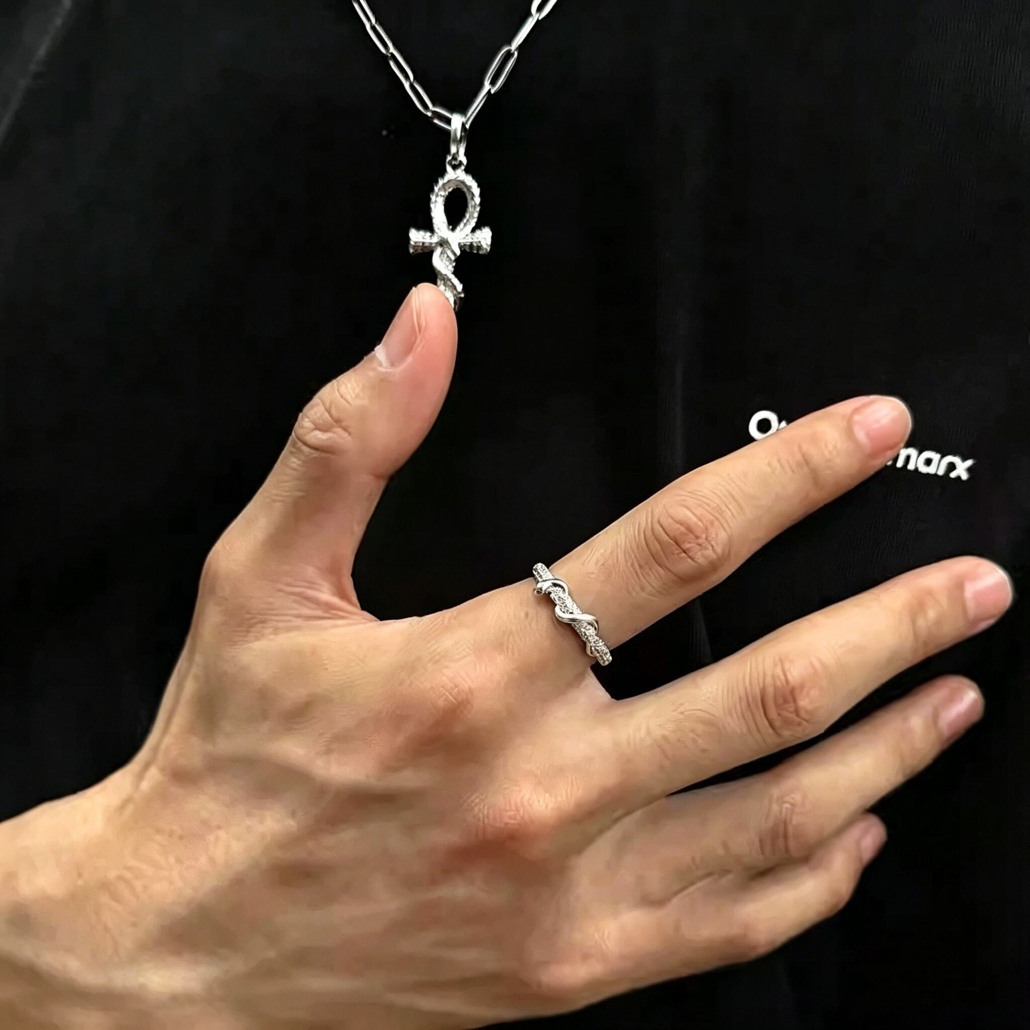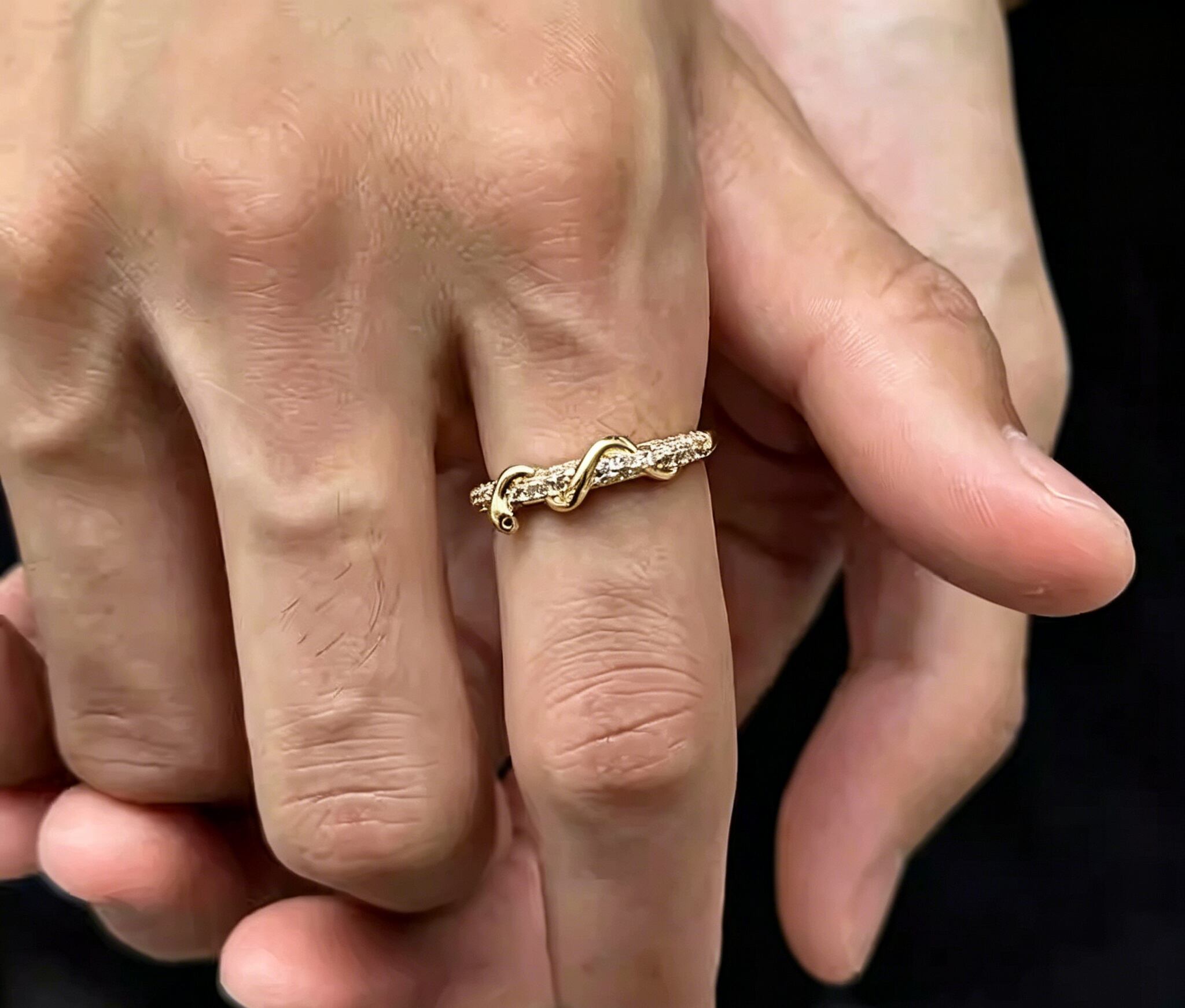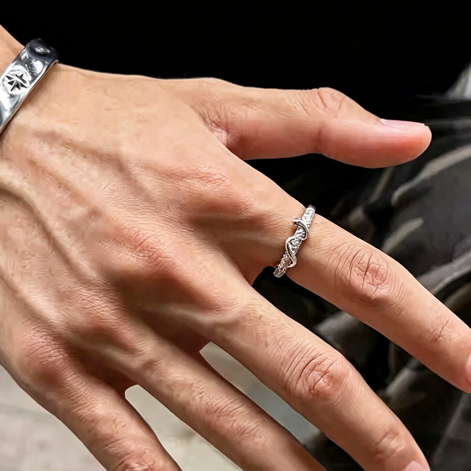 スネークモチーフを採用した、巻きつきデザインのメンズリング。