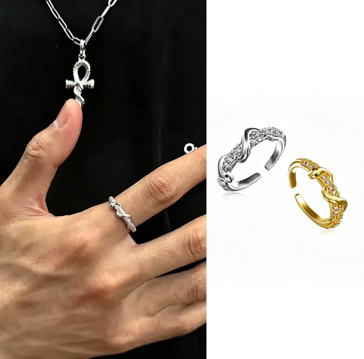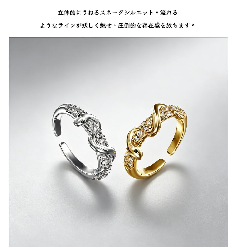 204.スネークモチーフ メンズリング 上品 高見え 巻きつきデザイン フリーサイズ サイズ調整可能 ゴールド シルバー 大人アクセ 男性用
