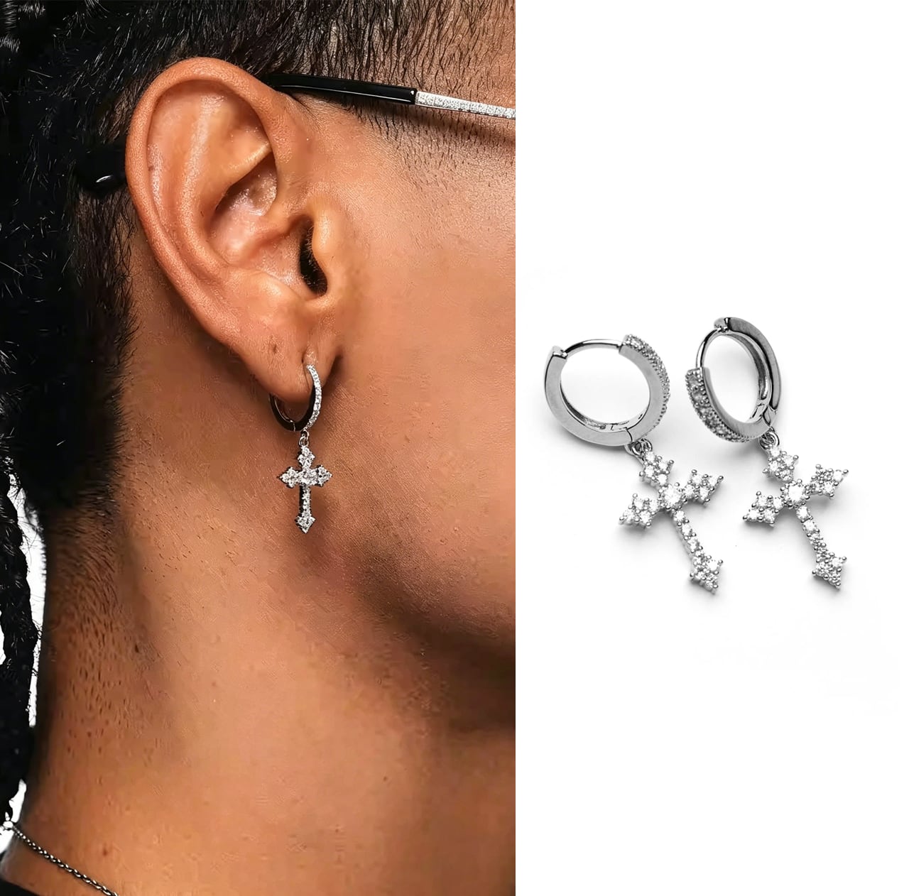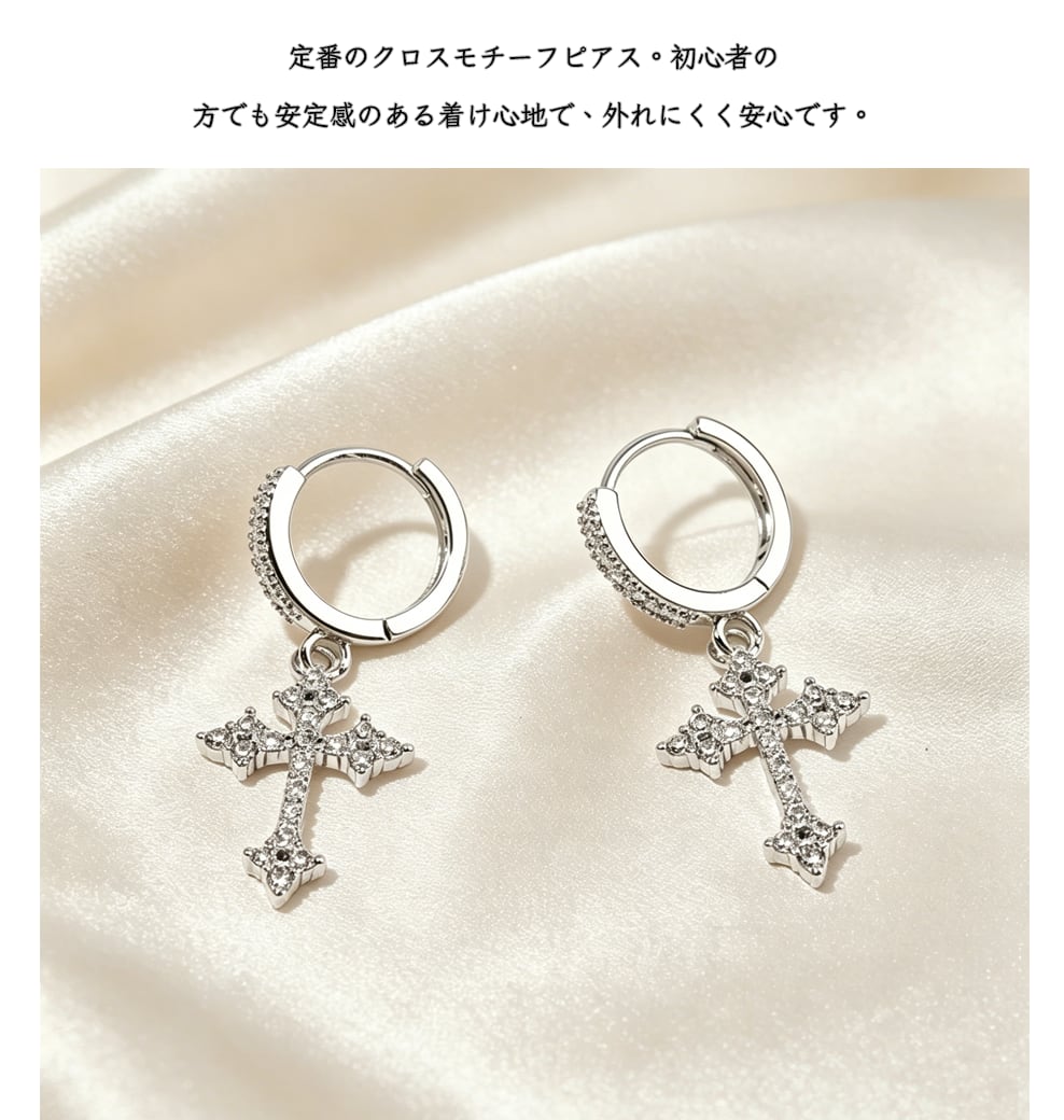 209.クロスモチーフ メンズピアス シルバー シンプルデザイン 個性派 上品 カジュアル 存在感あり 男性用 アクセサリー