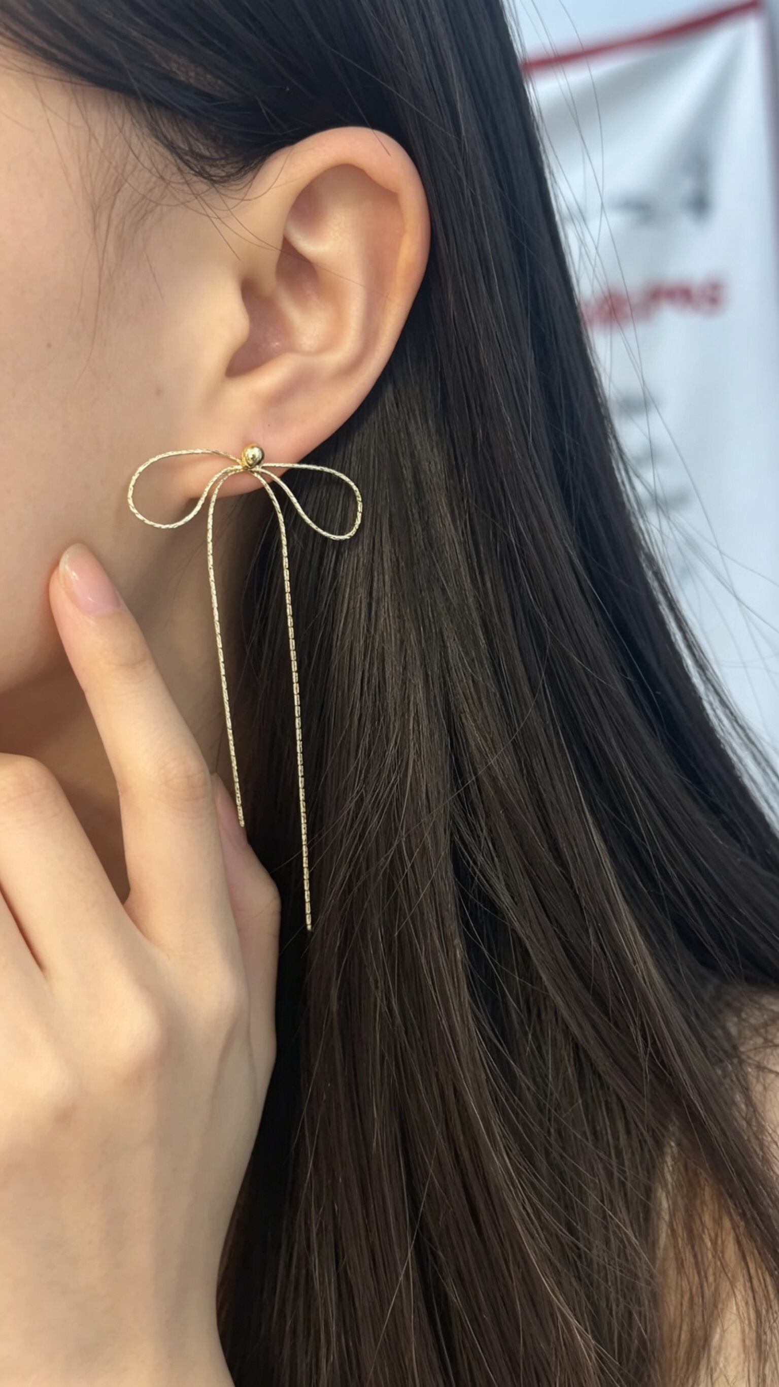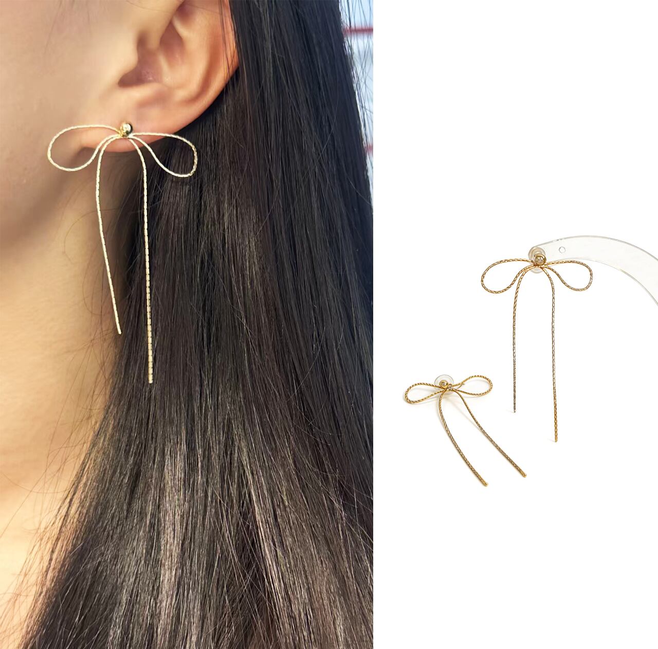 このリボンピアスは、シンプルなのにしっかり“高見え”。