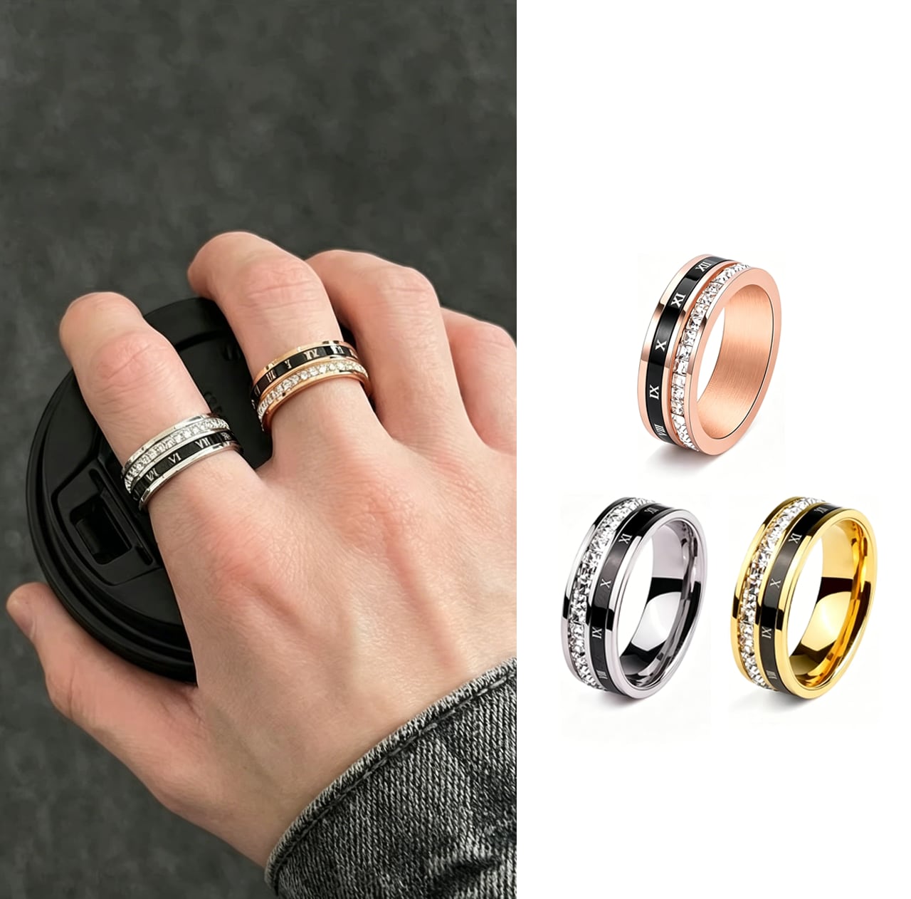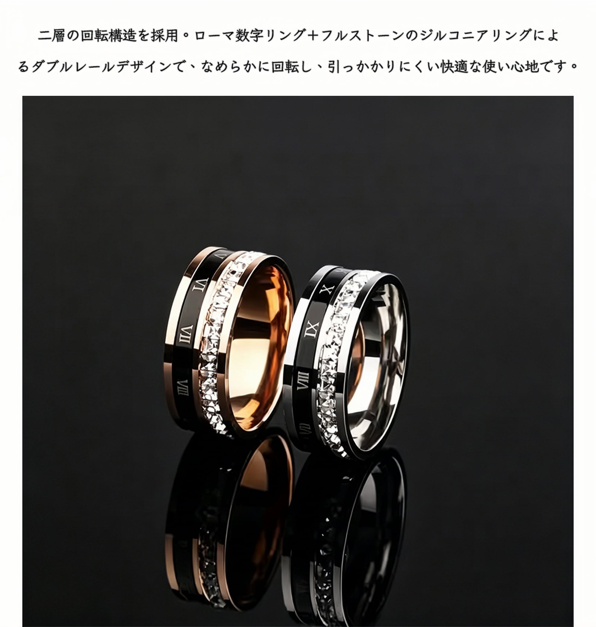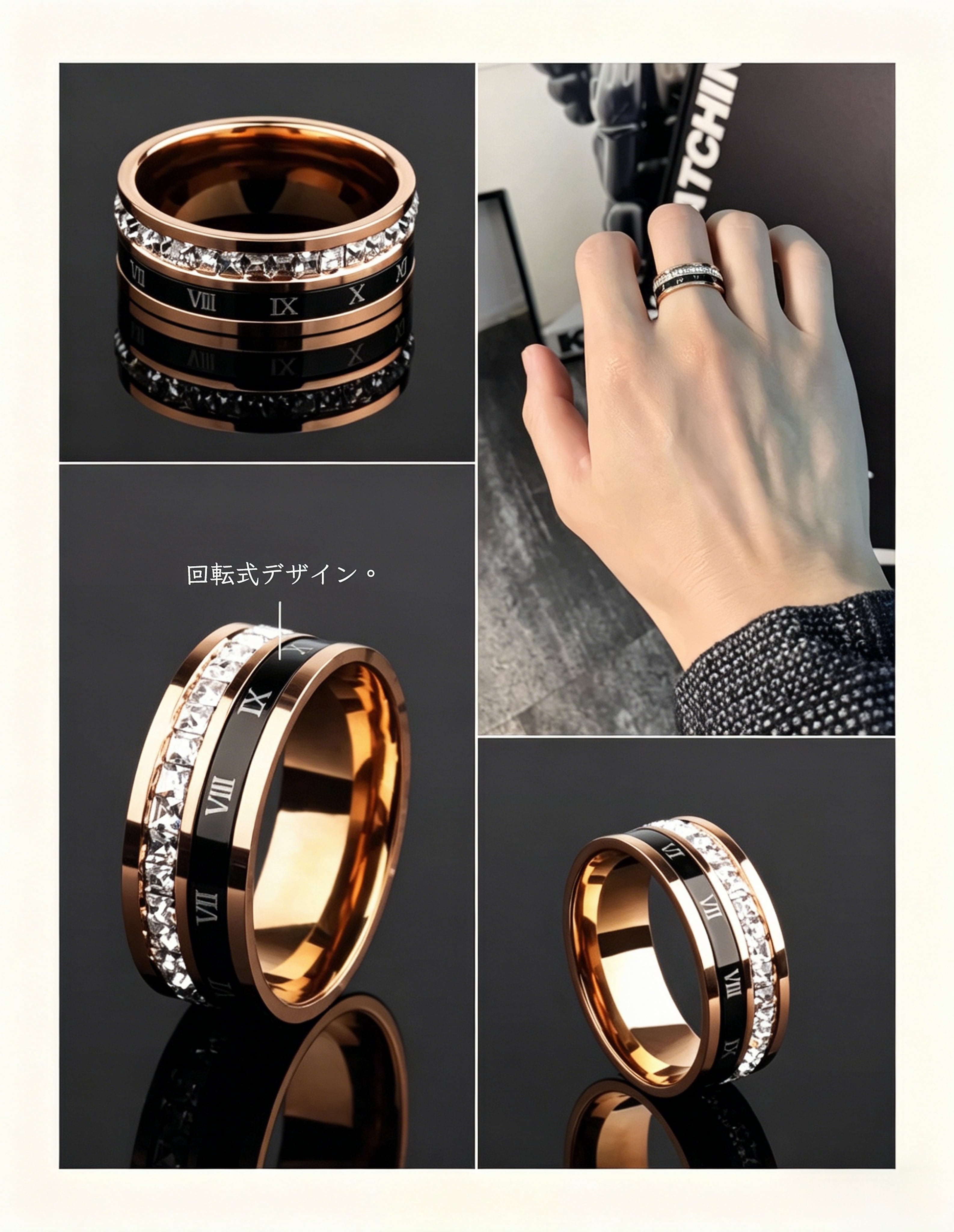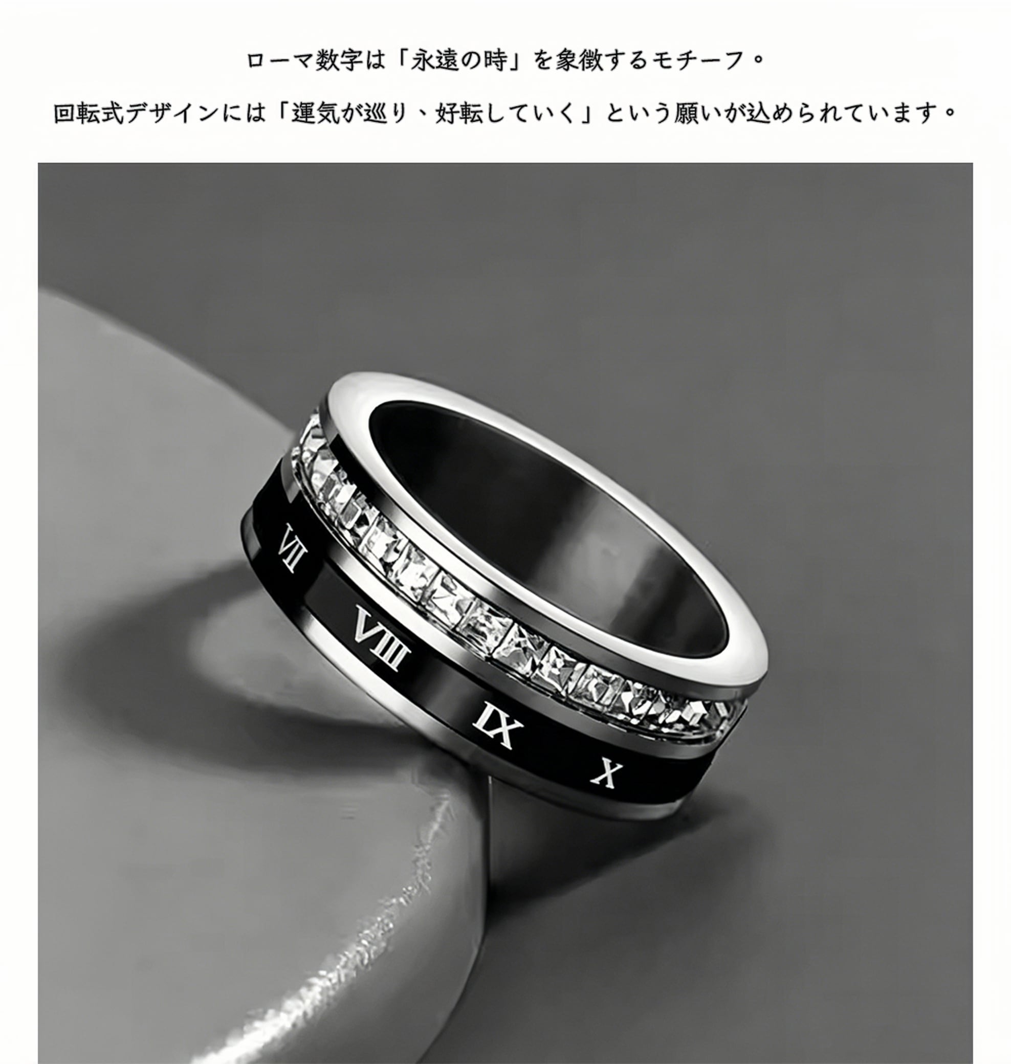 219.回るリング メンズ チタン鋼 ダブル構造 ローマ数字デザイン 高見えで存在感あり 大人男性に人気 指輪