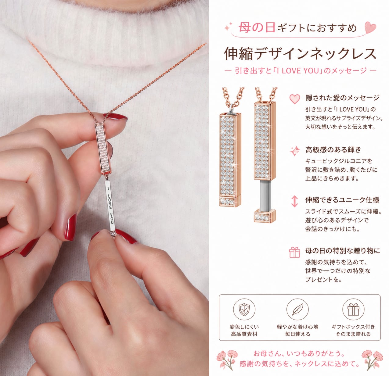 224.【母の日ギフト】伸縮ネックレス|「I LOVE YOU」メッセージ付き|ローズゴールド&シルバー|特別な贈り物に|数量限定・完売次第終了