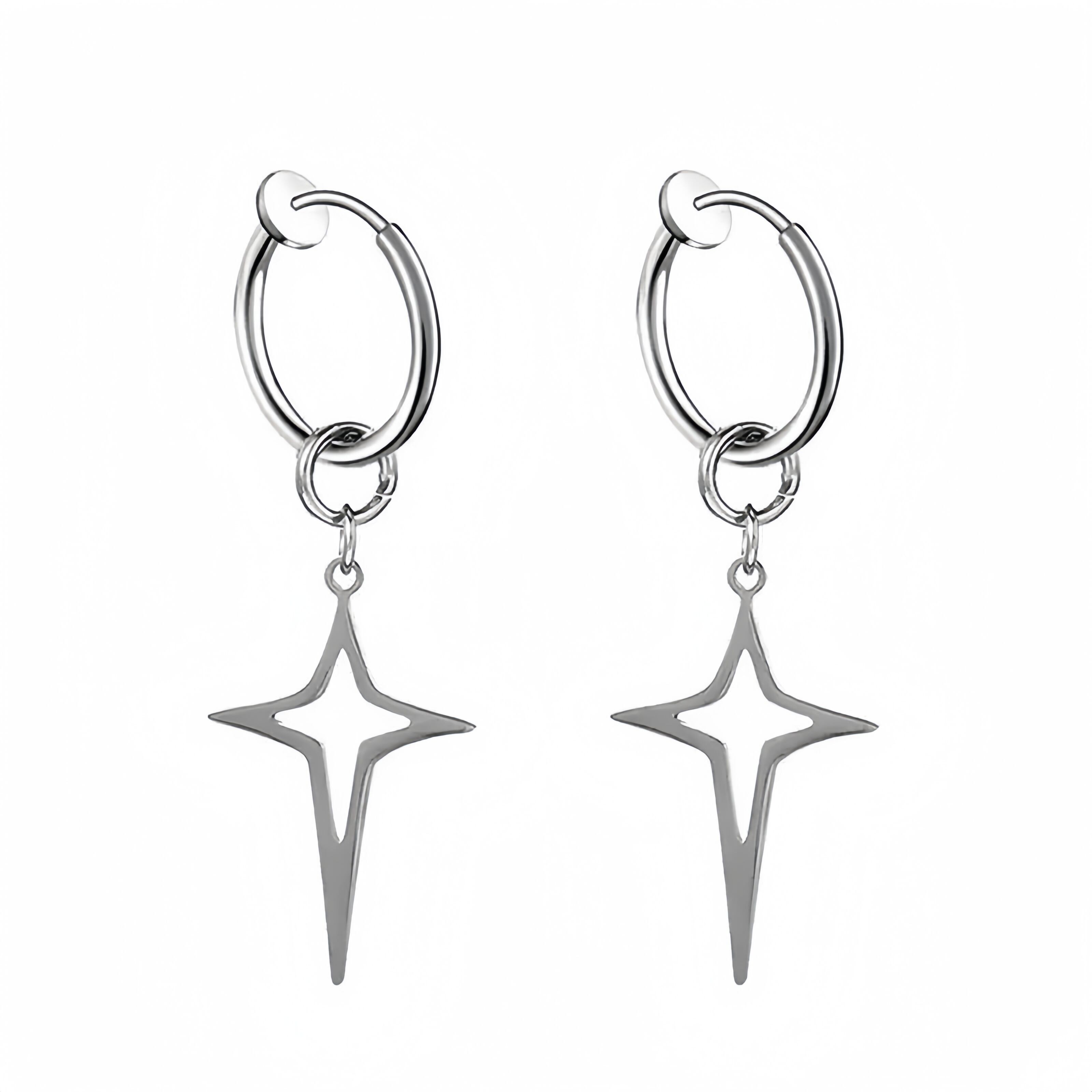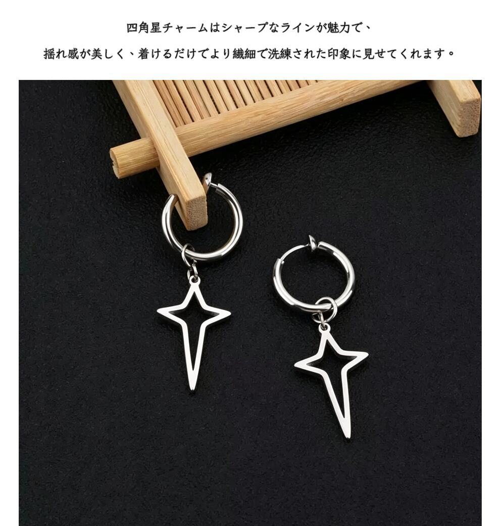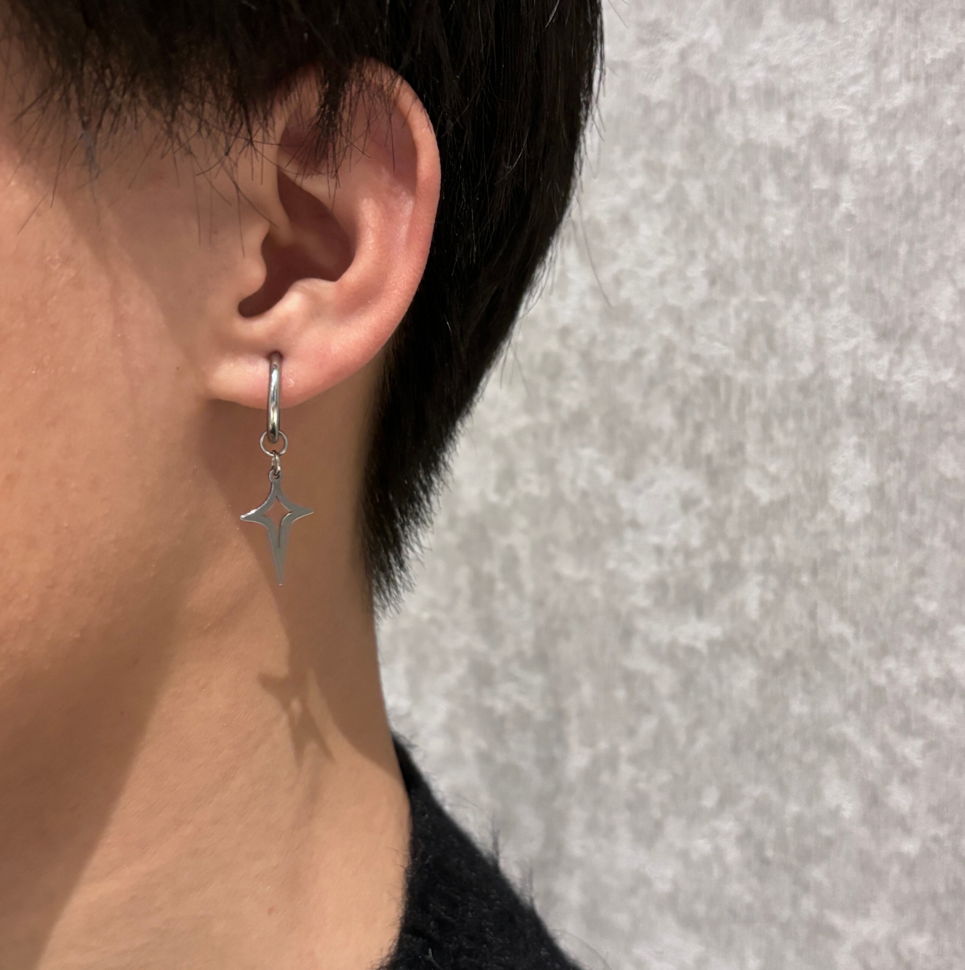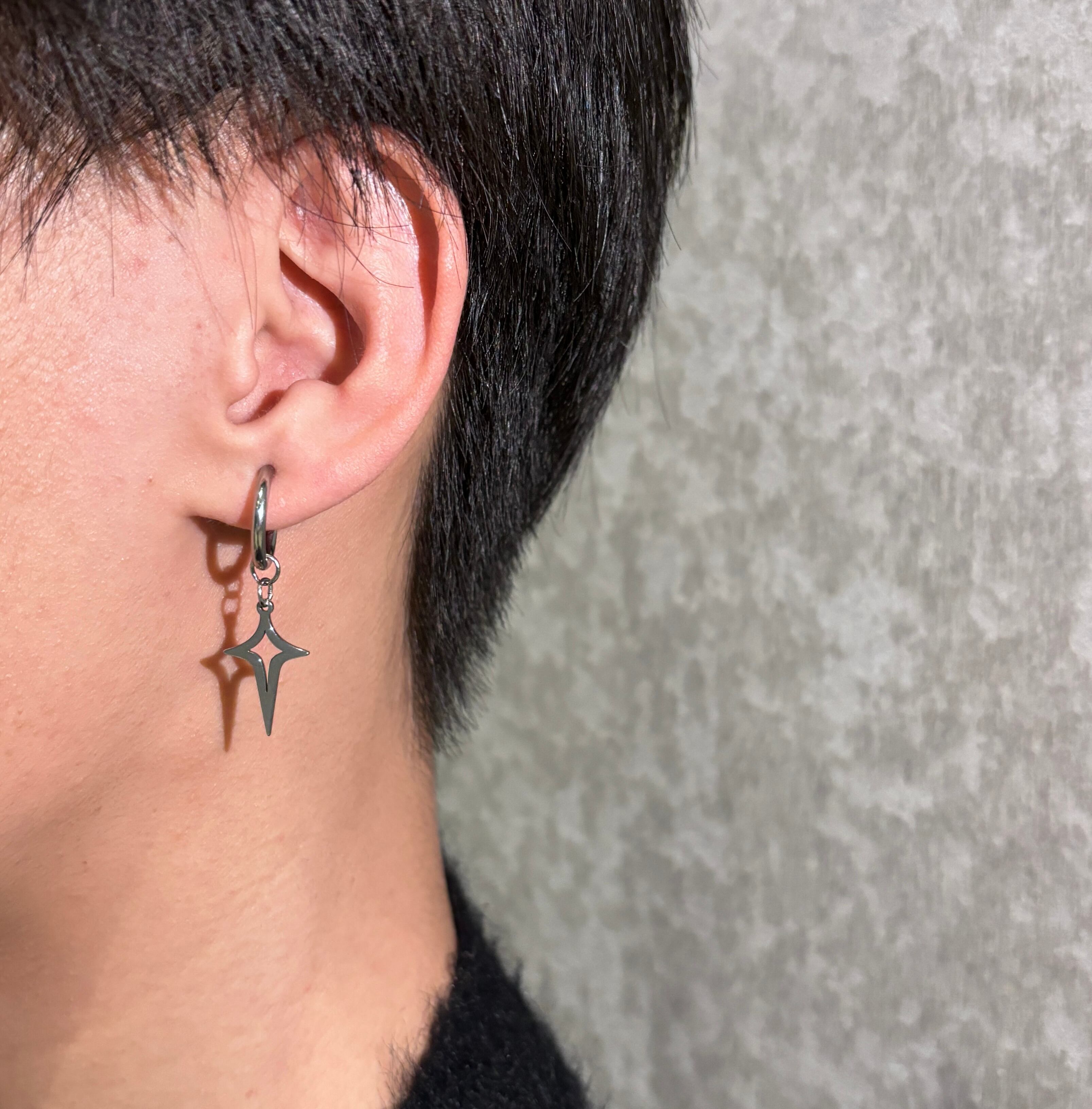 星モチーフの揺れるデザインが目を引く、メンズ向けノンホールイヤリングです。